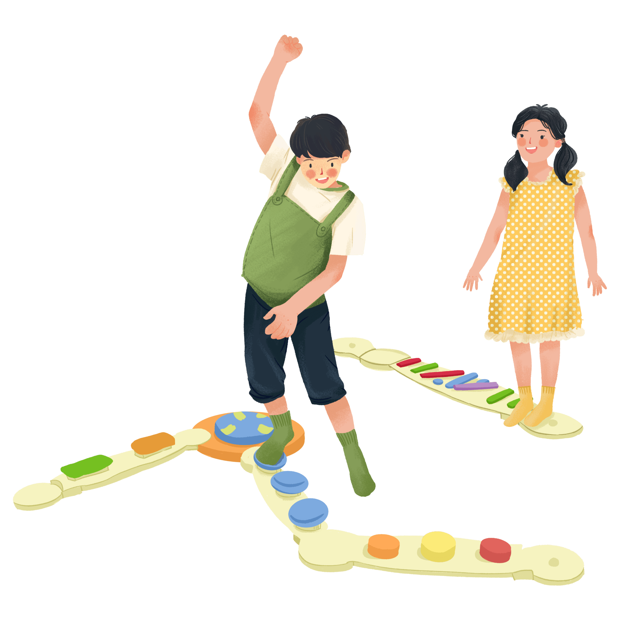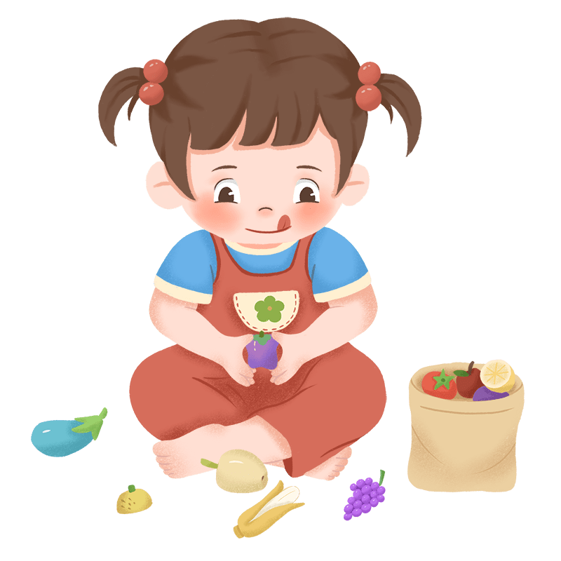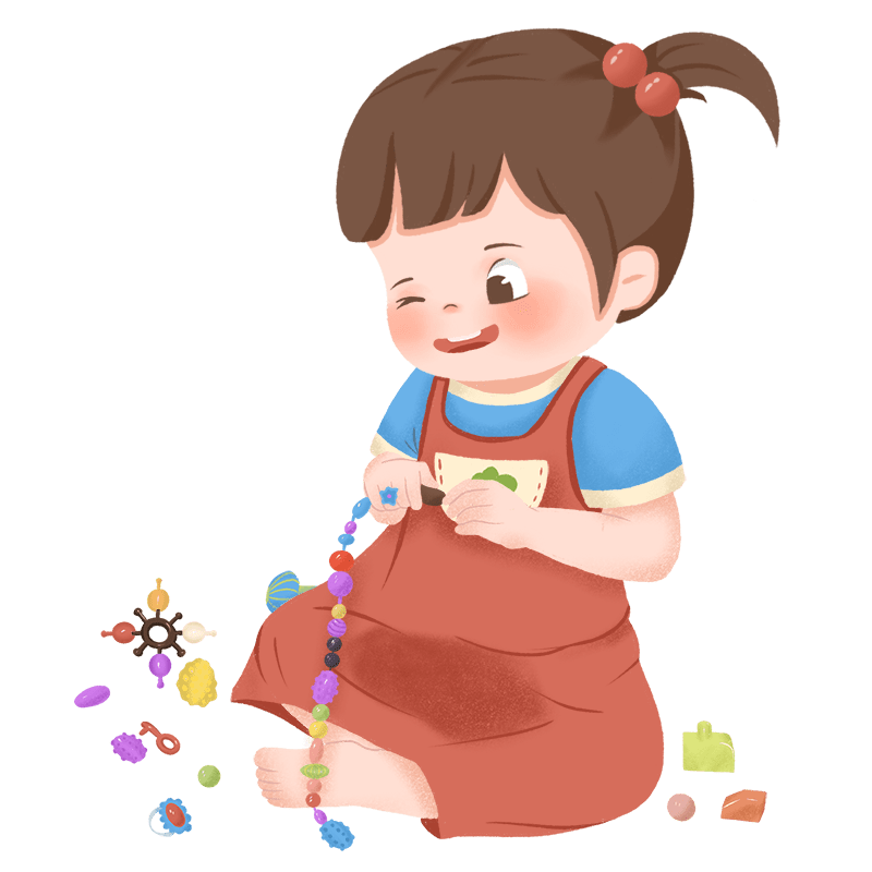 手绘-玩玩具女孩儿童人物插画9