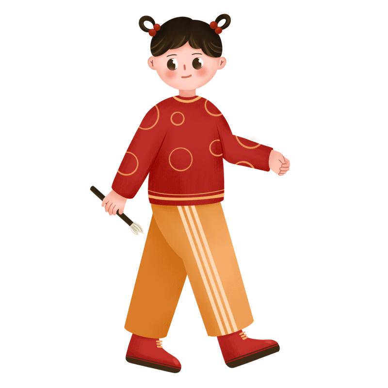 手绘-新年喜庆儿童元素-小女孩