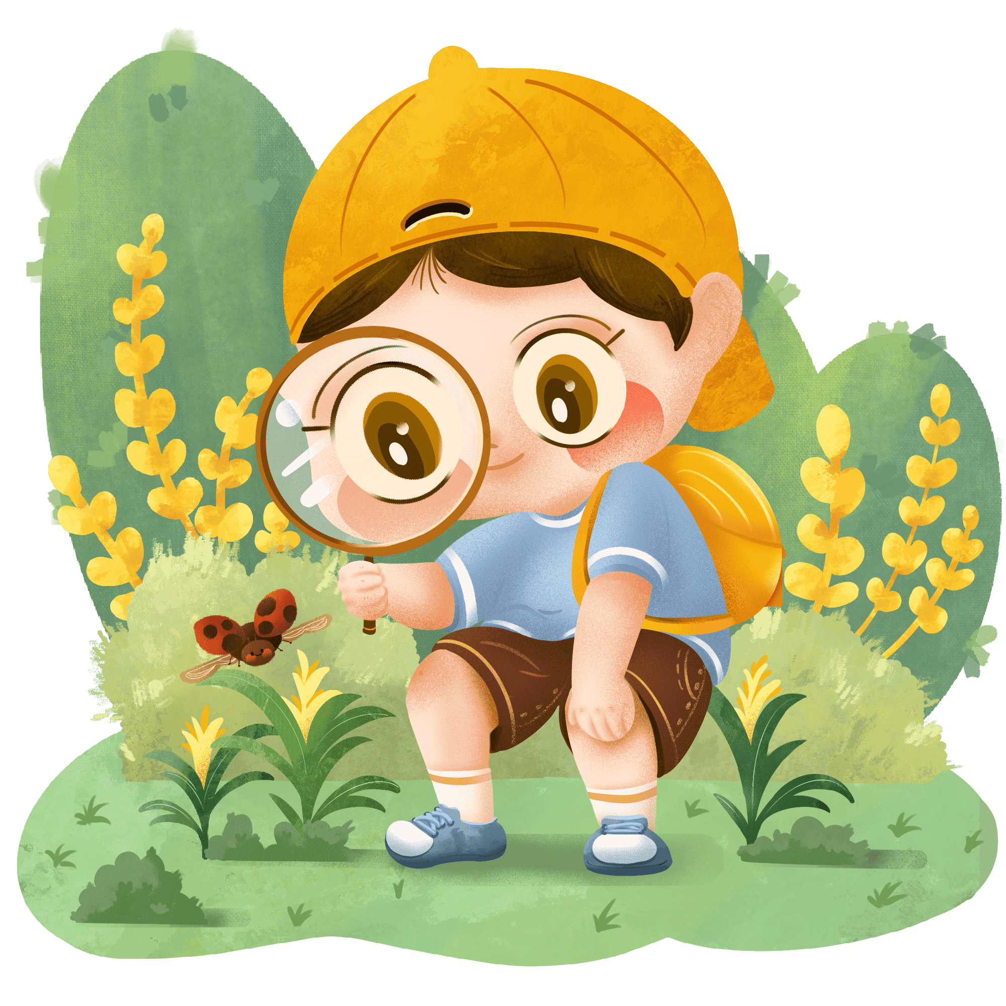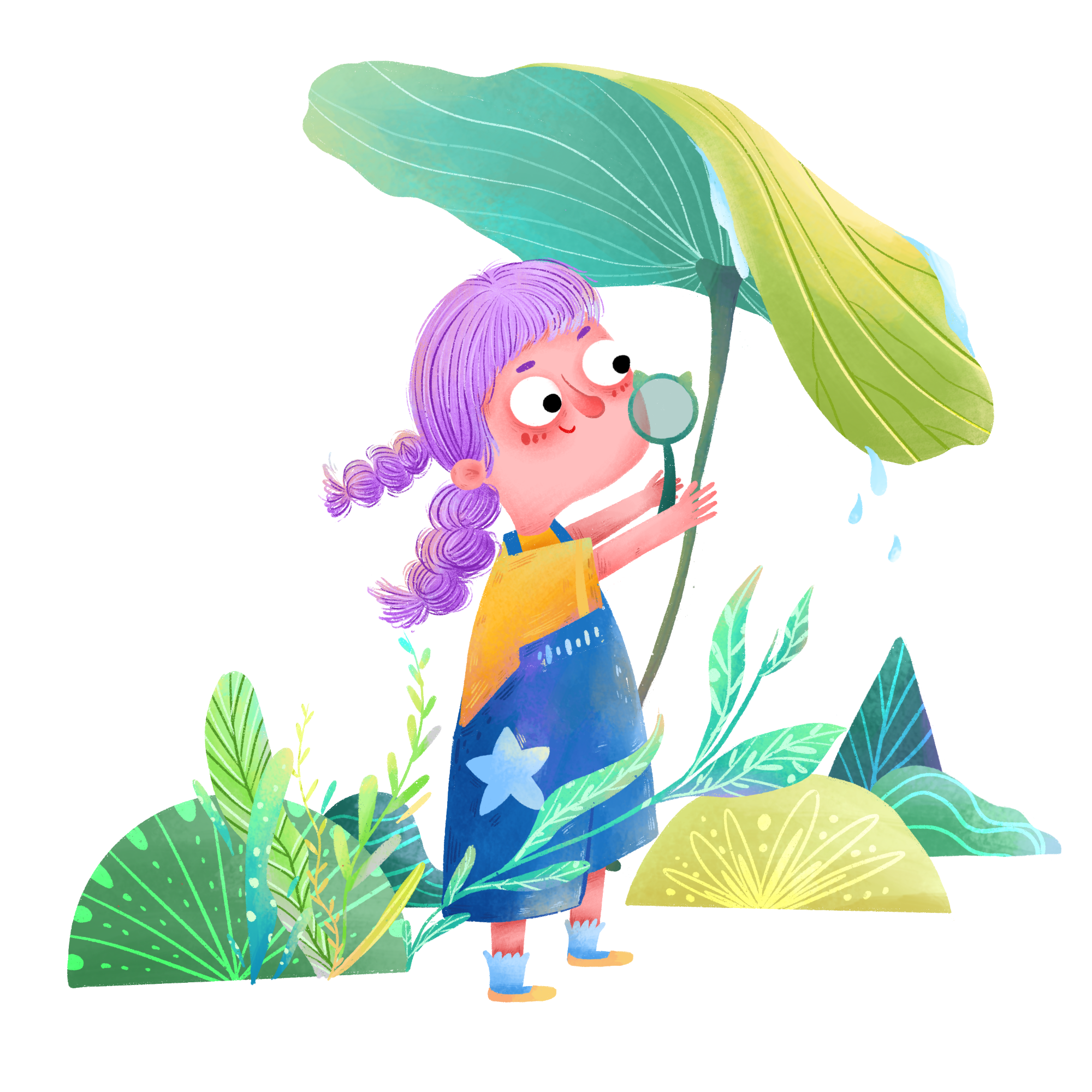 手绘-户外女孩儿童元素人物插画2
