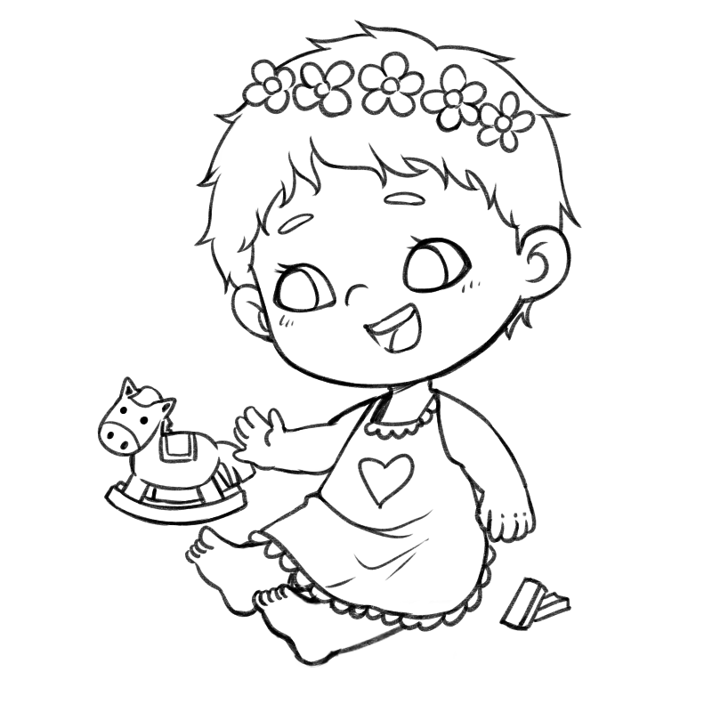 手绘-新生儿线稿人物插画4