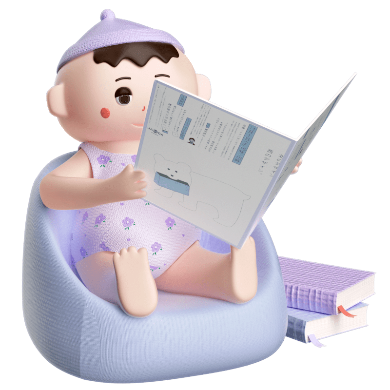C4D-3D立体婴儿人物插画-看报纸