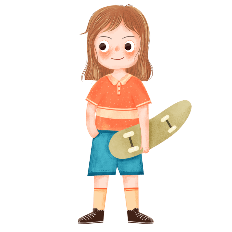 卡通彩铅风-滑板人物