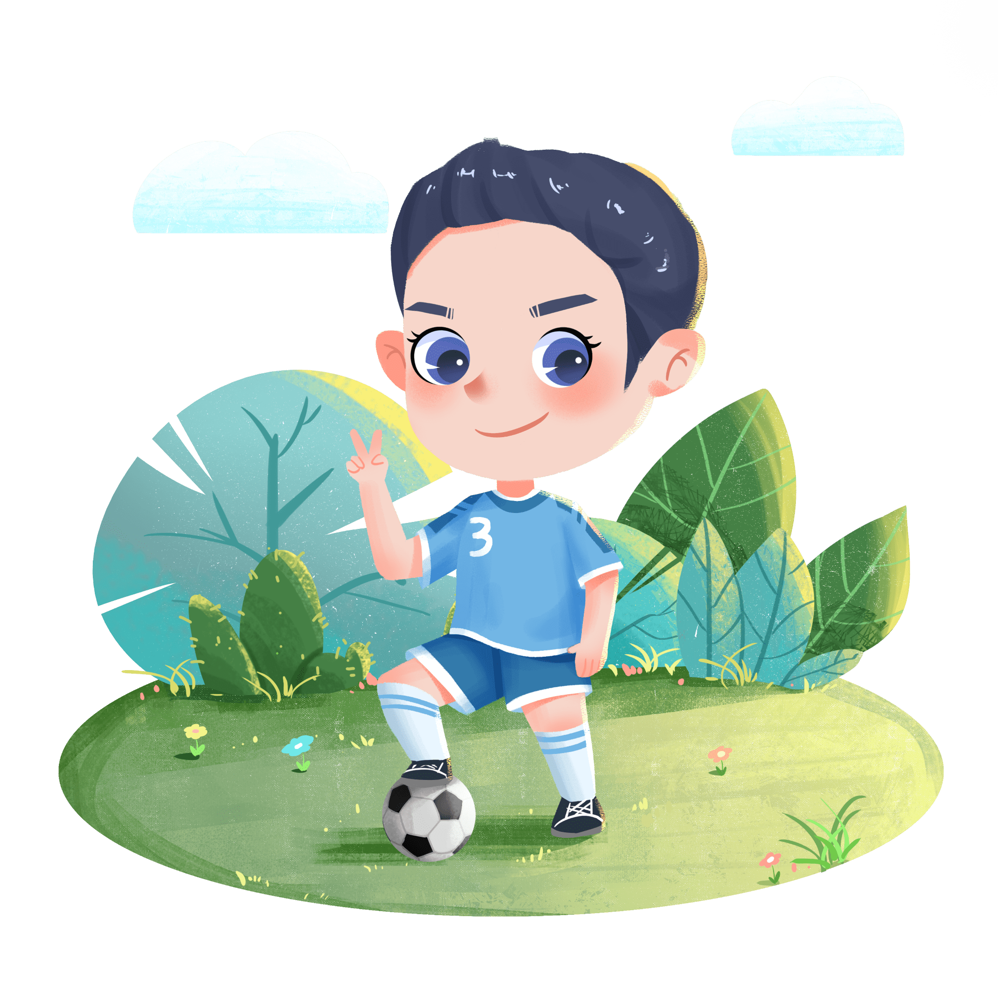 手绘风-儿童人物插画-男孩
