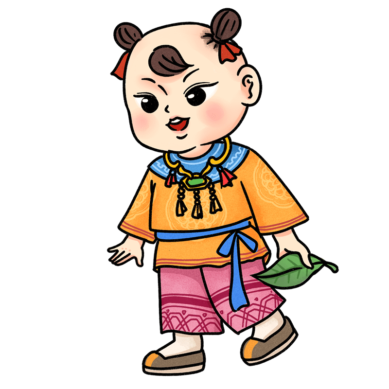 中国风-传统节气人物活动元素贴纸-黄衣服男孩