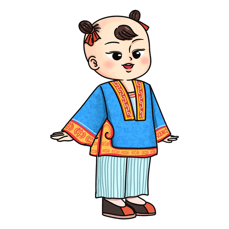 中国风-传统节气人物活动元素贴纸-蓝衣服男孩