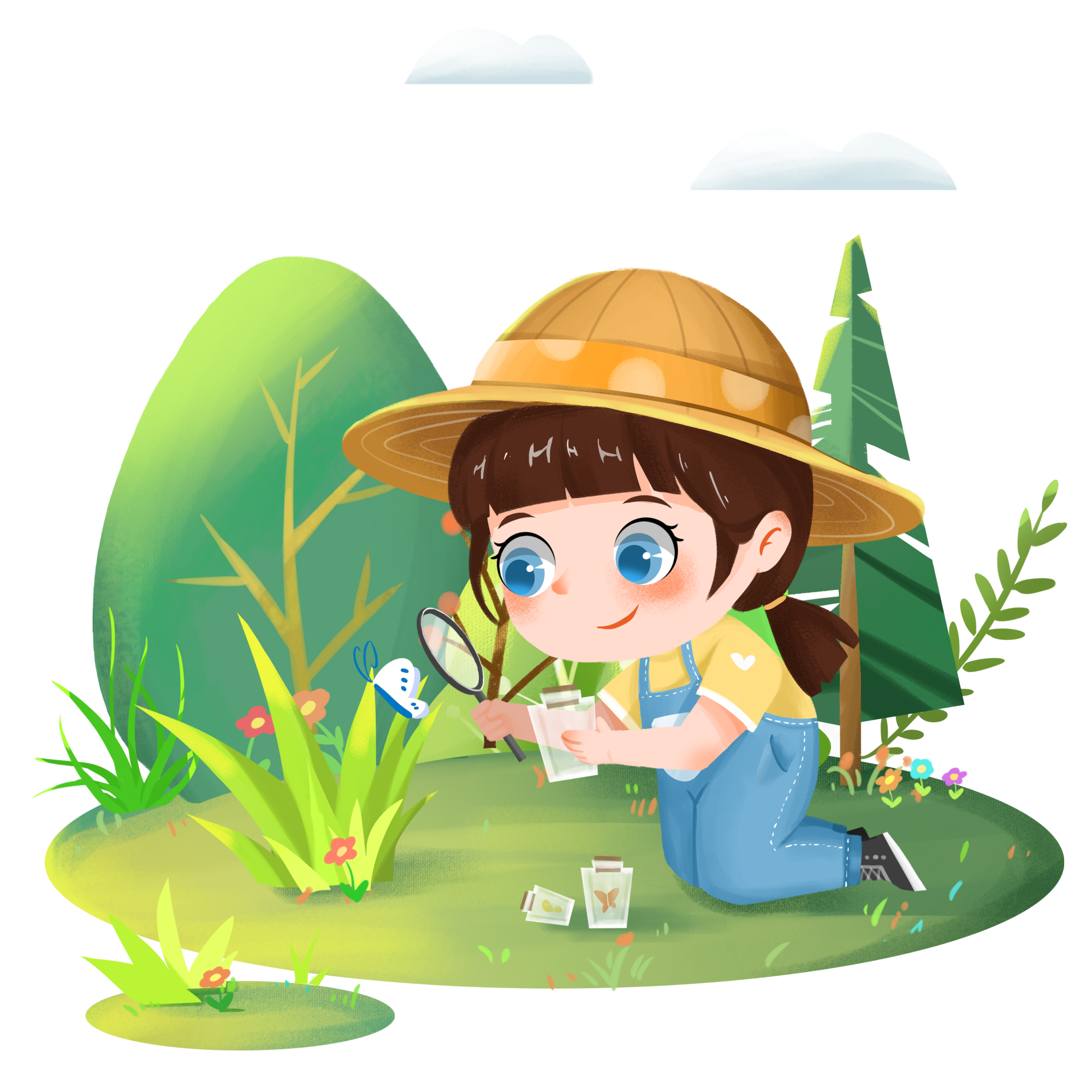 手绘-校园课外活动贴纸-抓蝴蝶