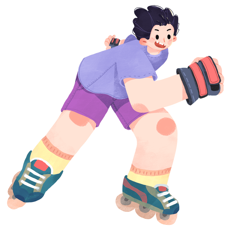 手绘-轮滑运动儿童人物插画2