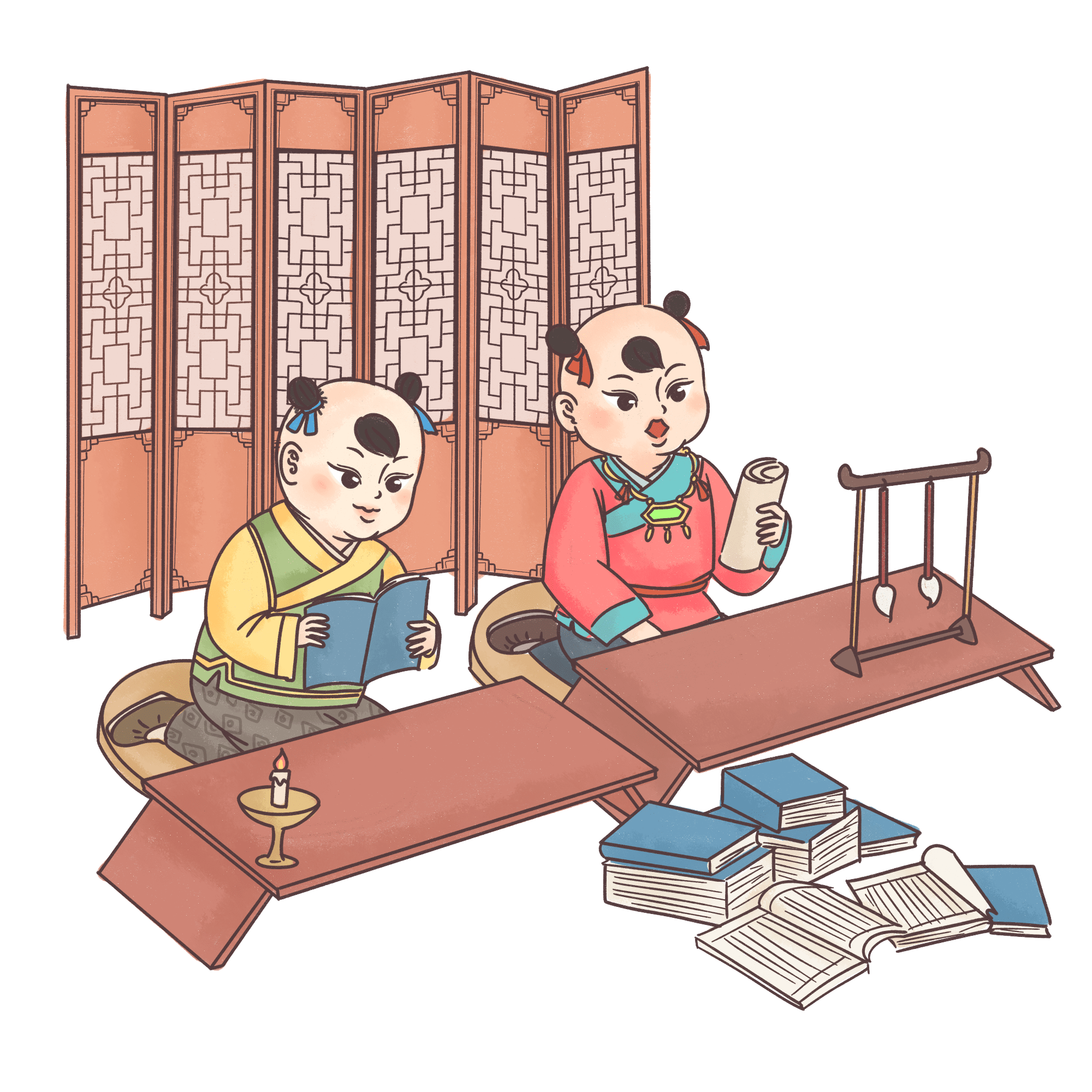 手绘-儿童元素人物插画-看书