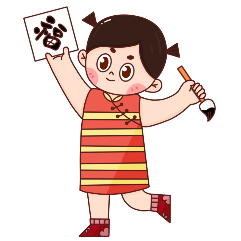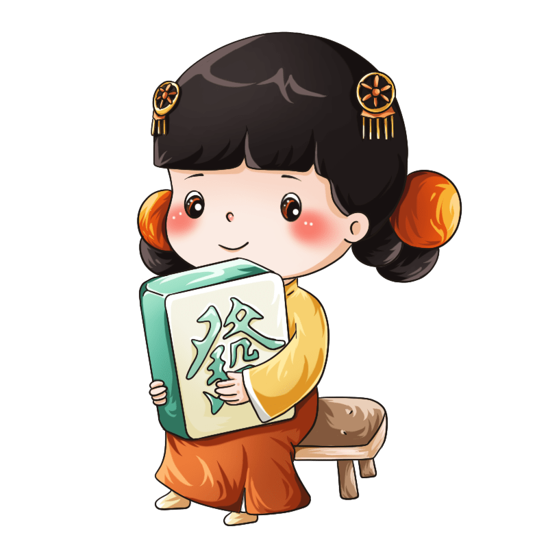 手绘-卡通国潮人物插画贴纸-麻将