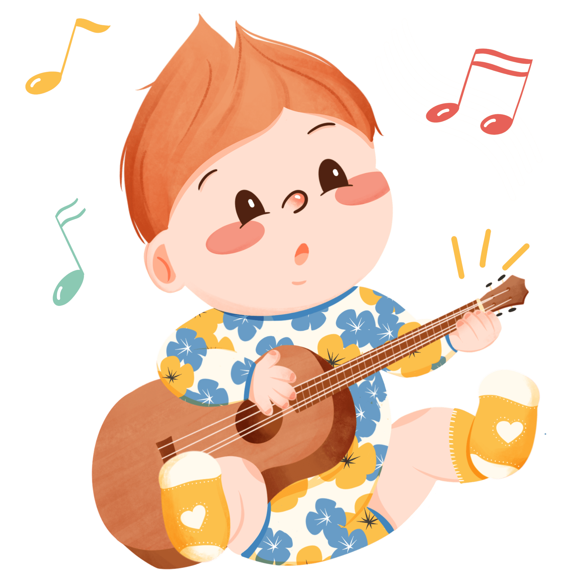 手绘-婴儿音乐元素-弹吉他