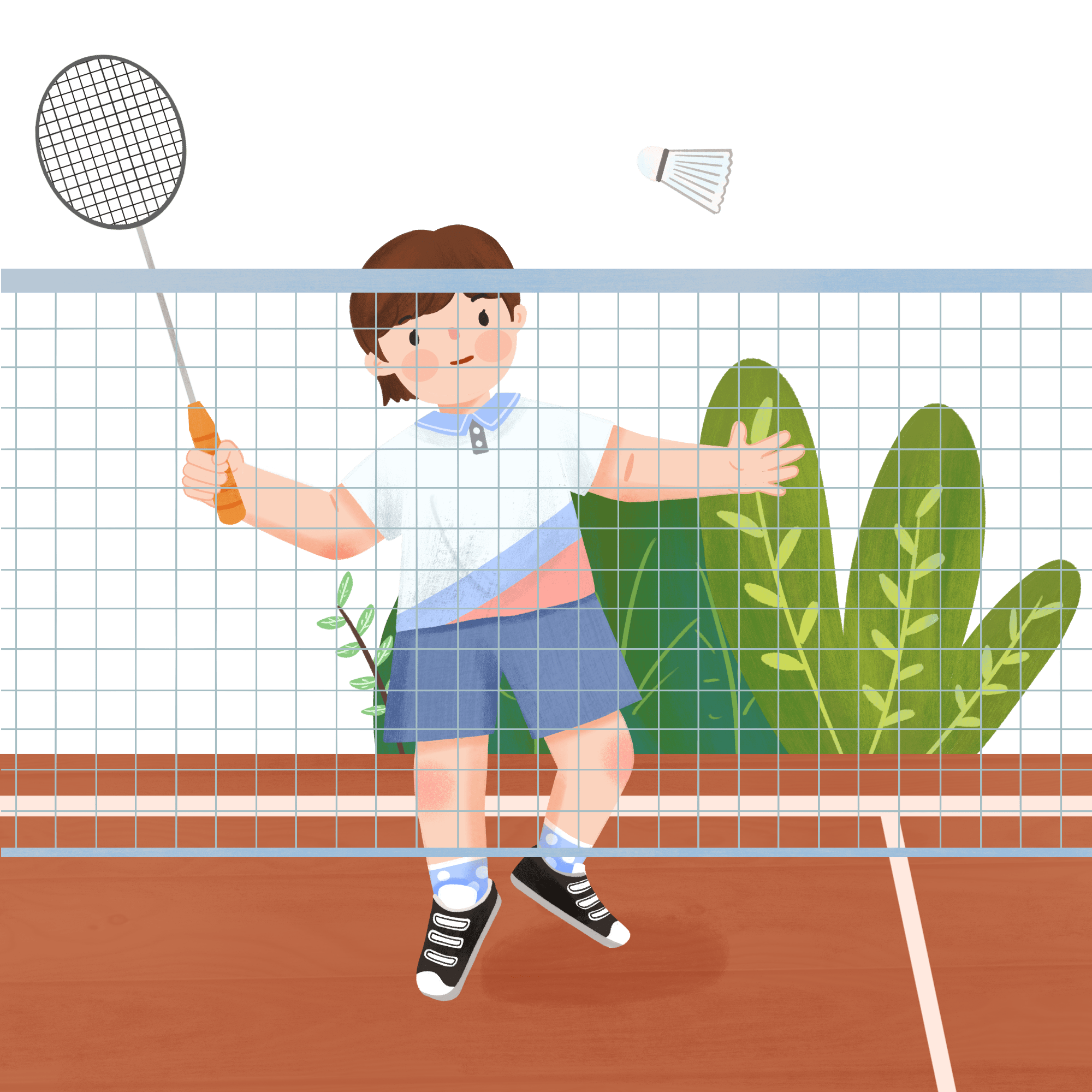 手绘-校园课外活动贴纸-羽毛球