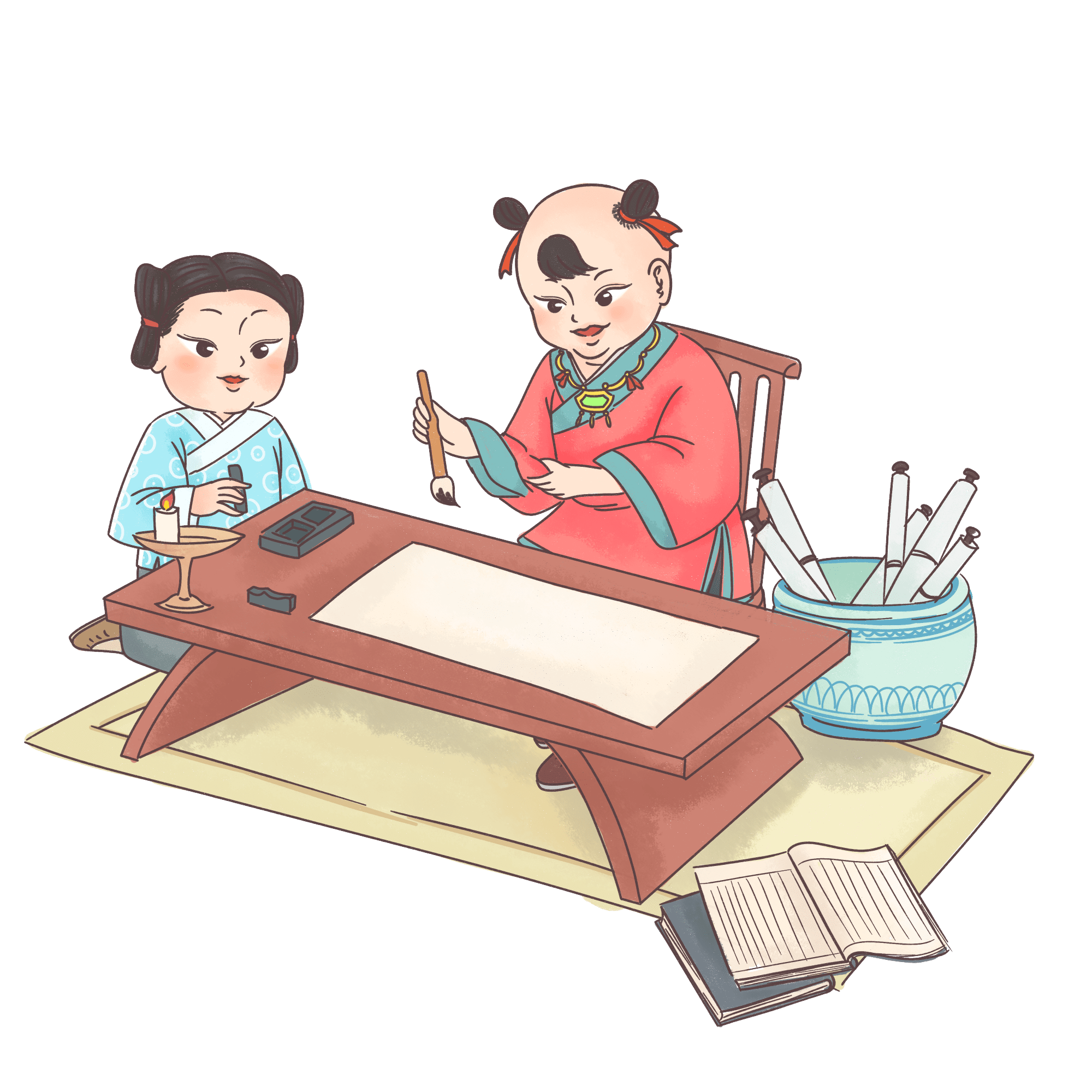 手绘-儿童国学兴趣班元素贴纸-书法