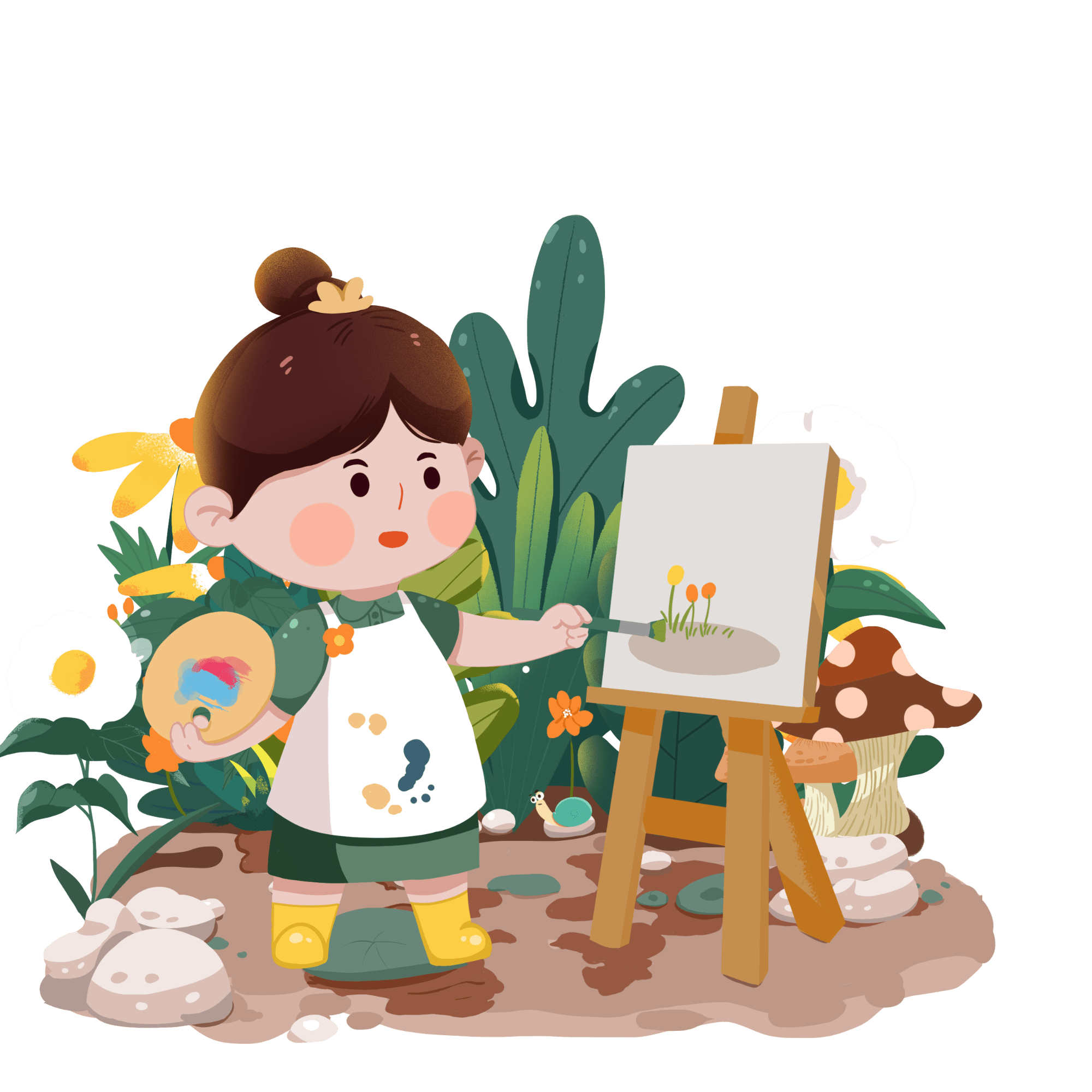 手绘风-儿童人物插画-女孩