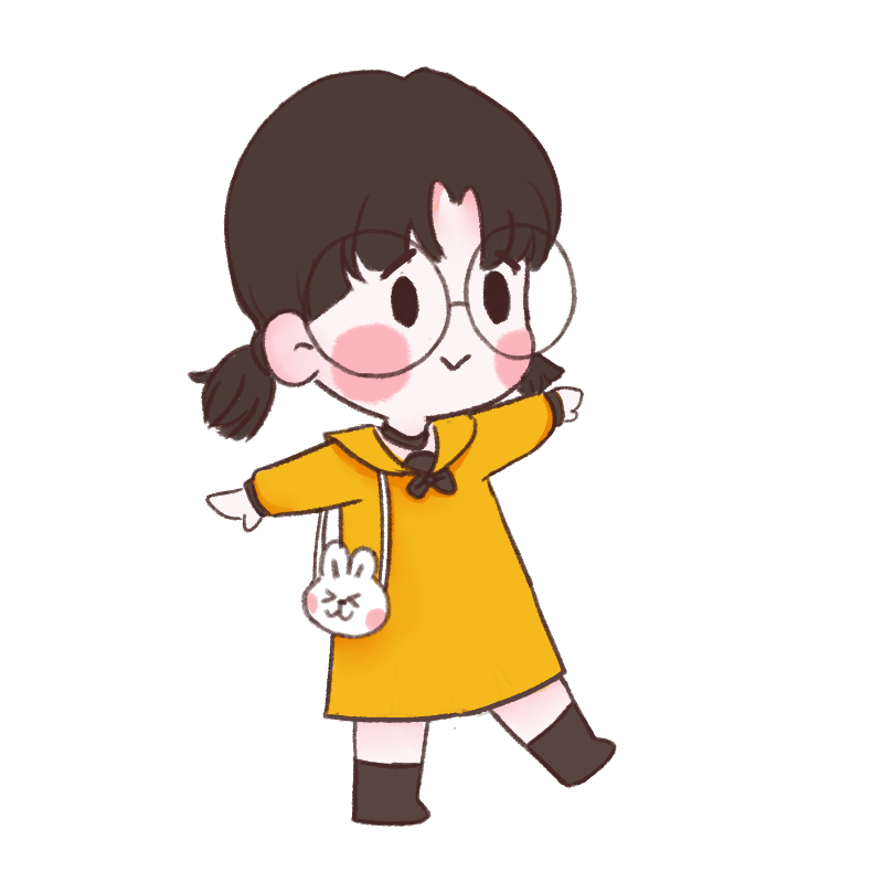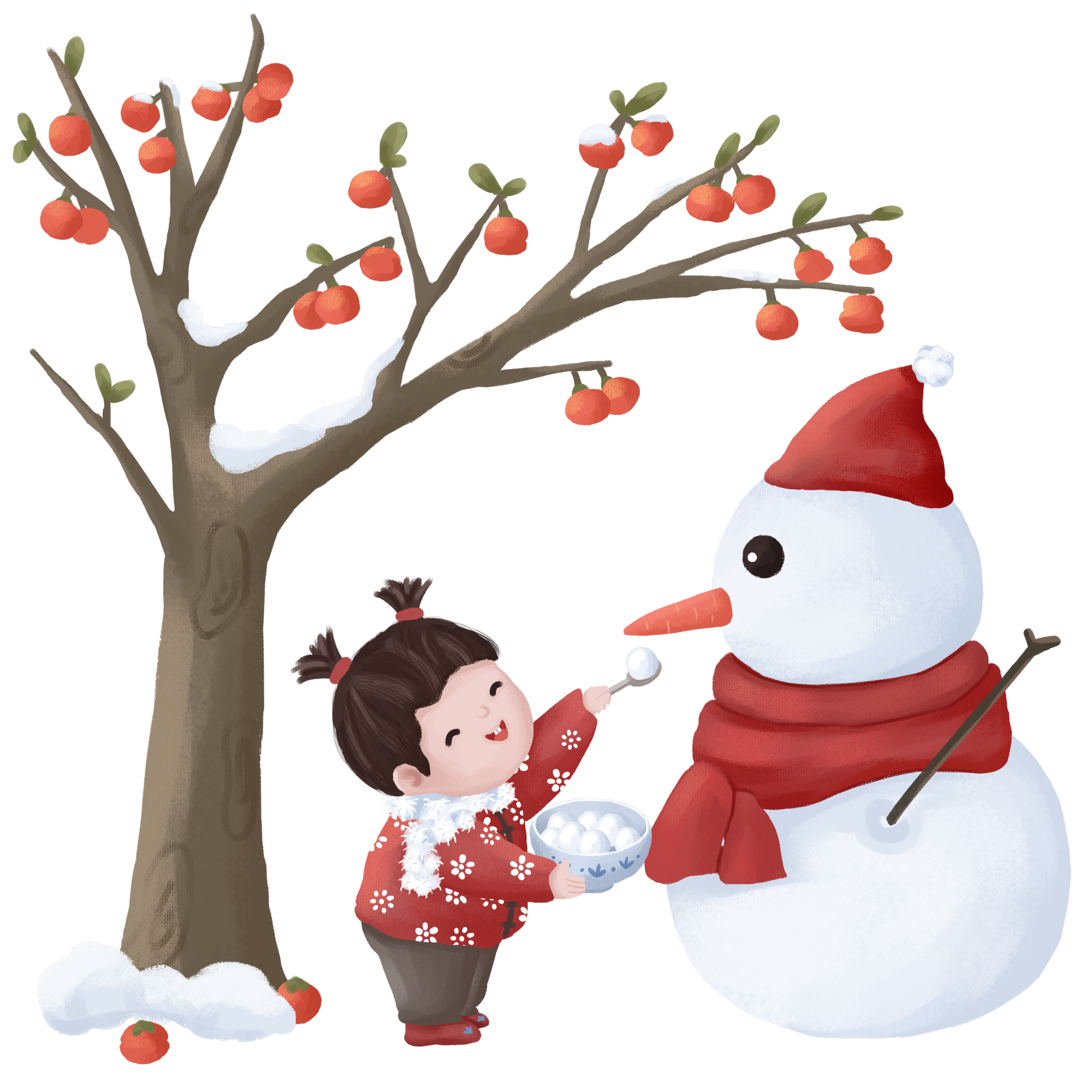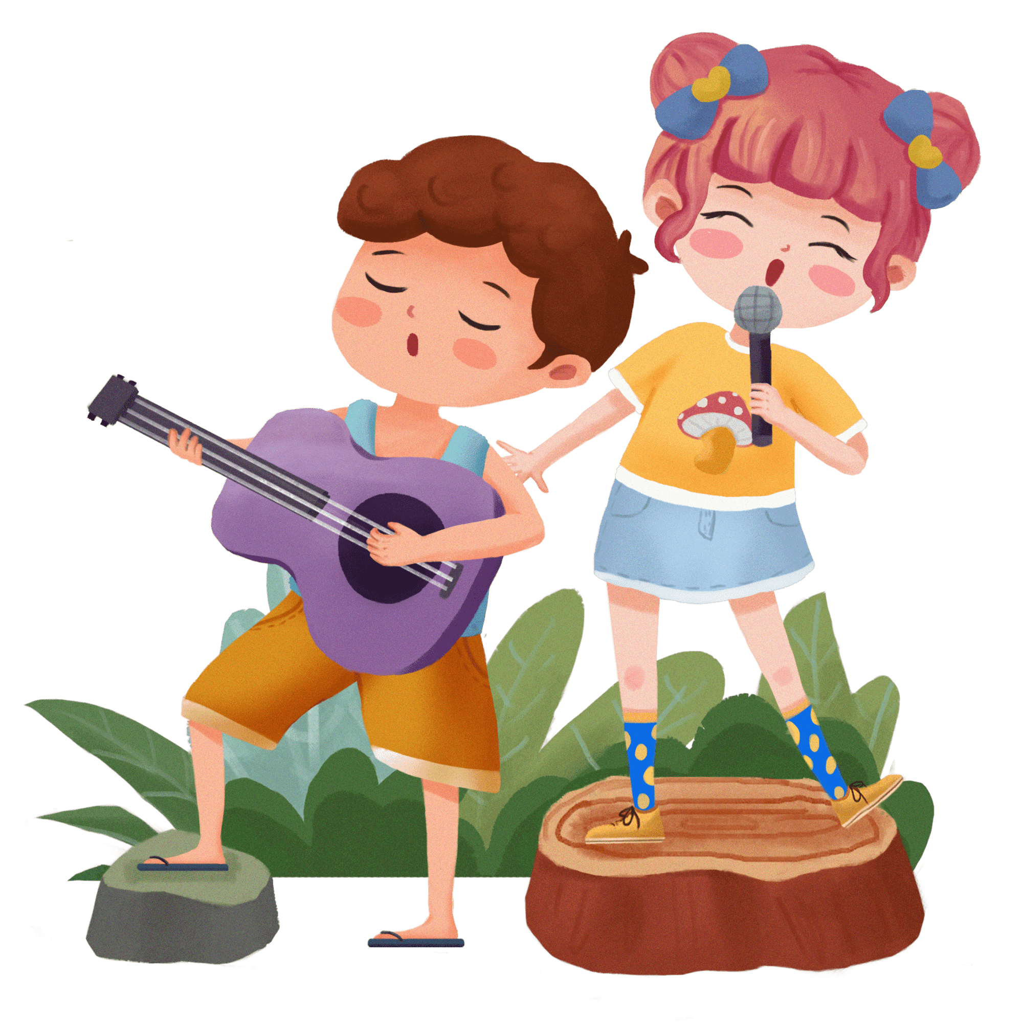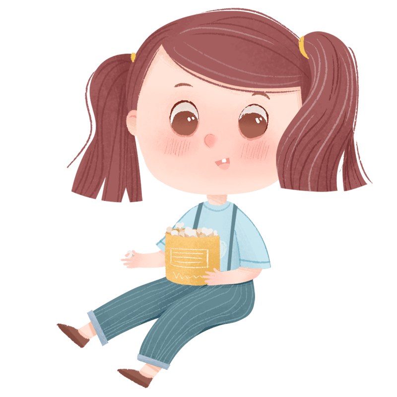 手绘肌理-姐妹人物元素贴纸-妹妹吃爆米花