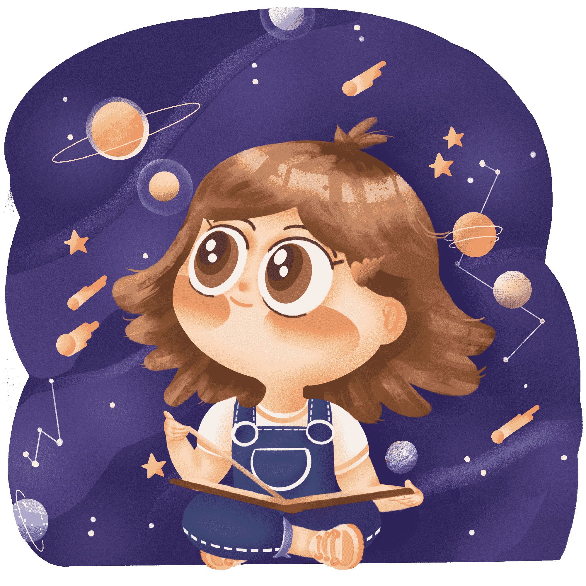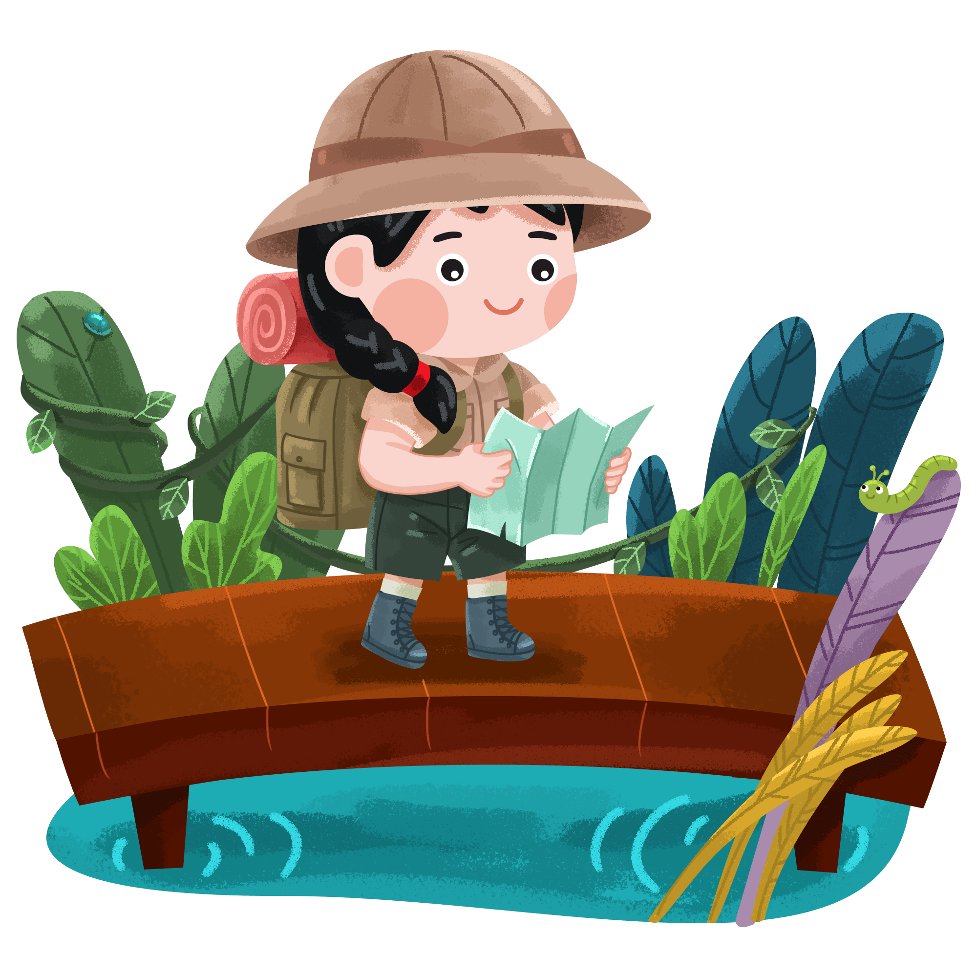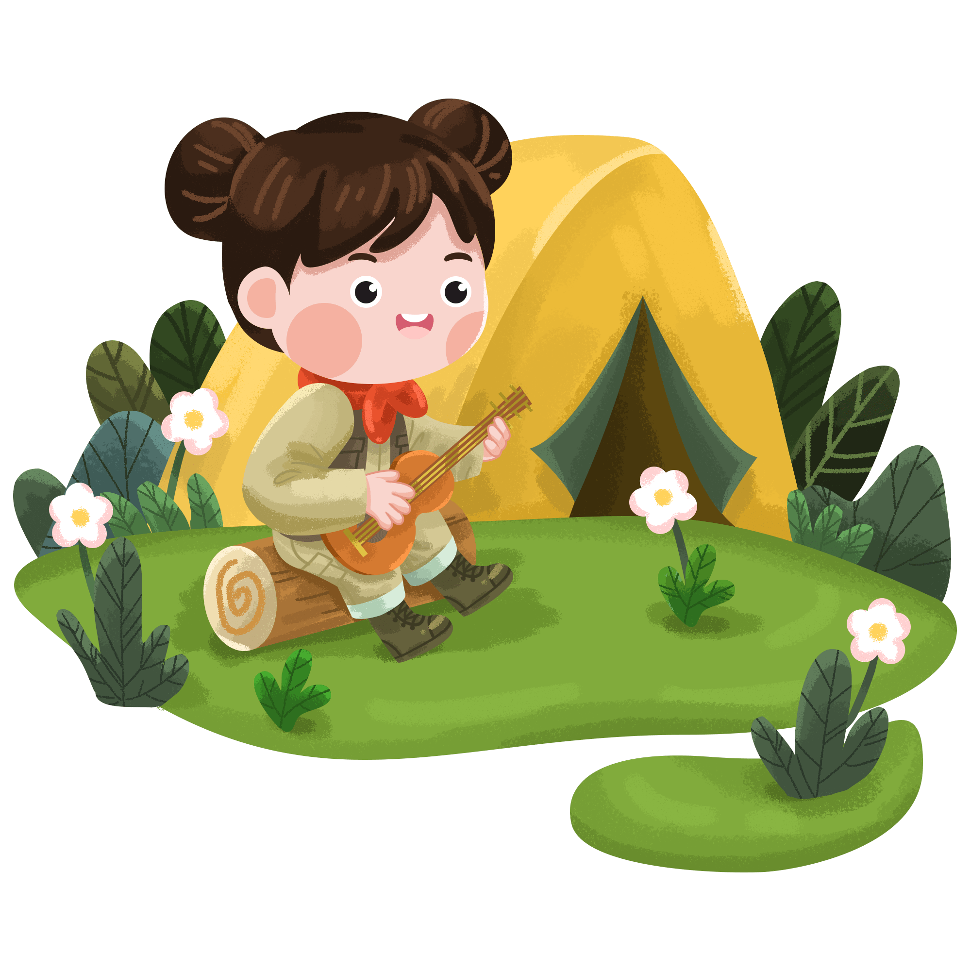 手绘肌理-姐妹人物元素贴纸-妹妹吃爆米花