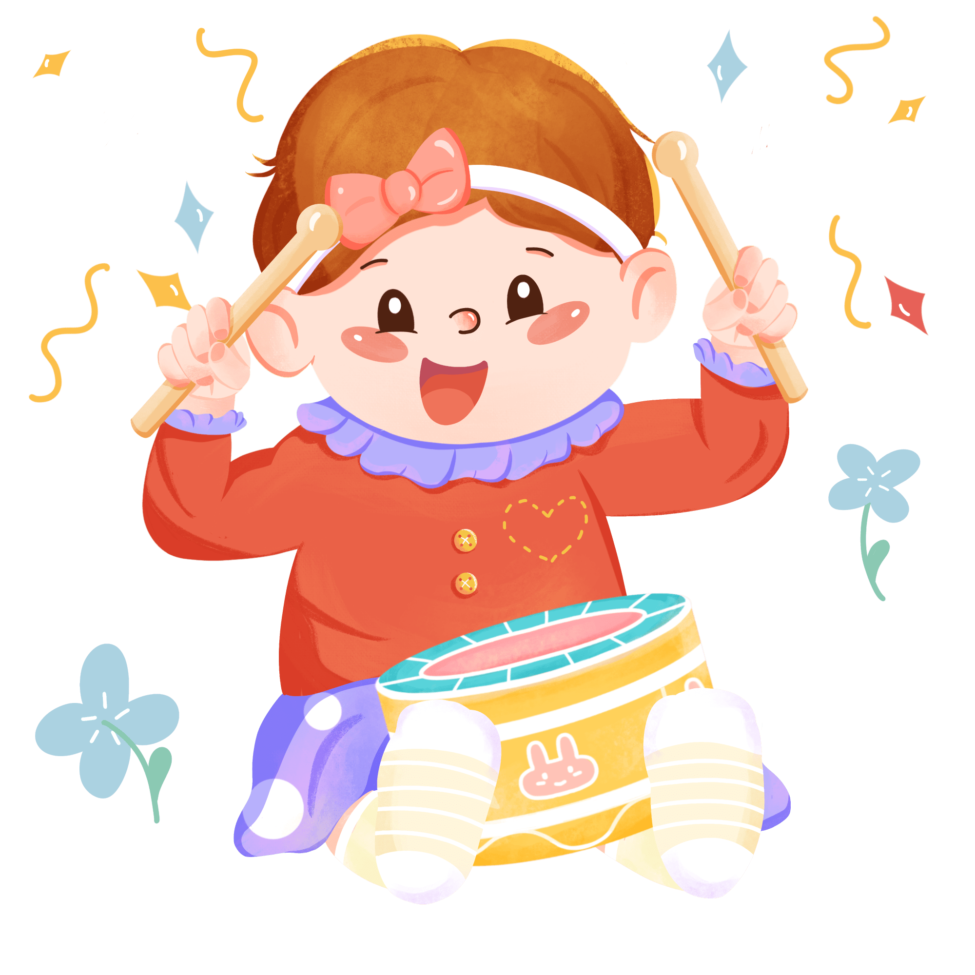 手绘-婴儿音乐元素-打鼓