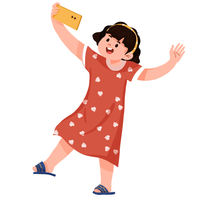 扁平-儿童玩耍主题素材贴纸-自拍女孩