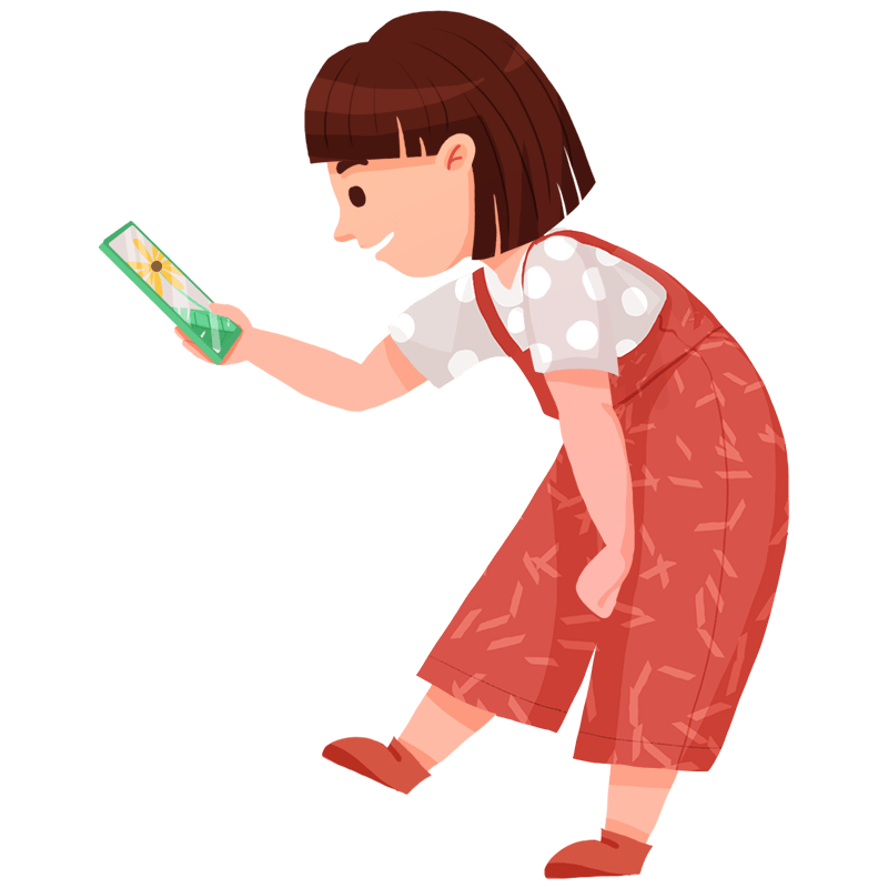 扁平-儿童玩耍主题素材贴纸-女孩拍照