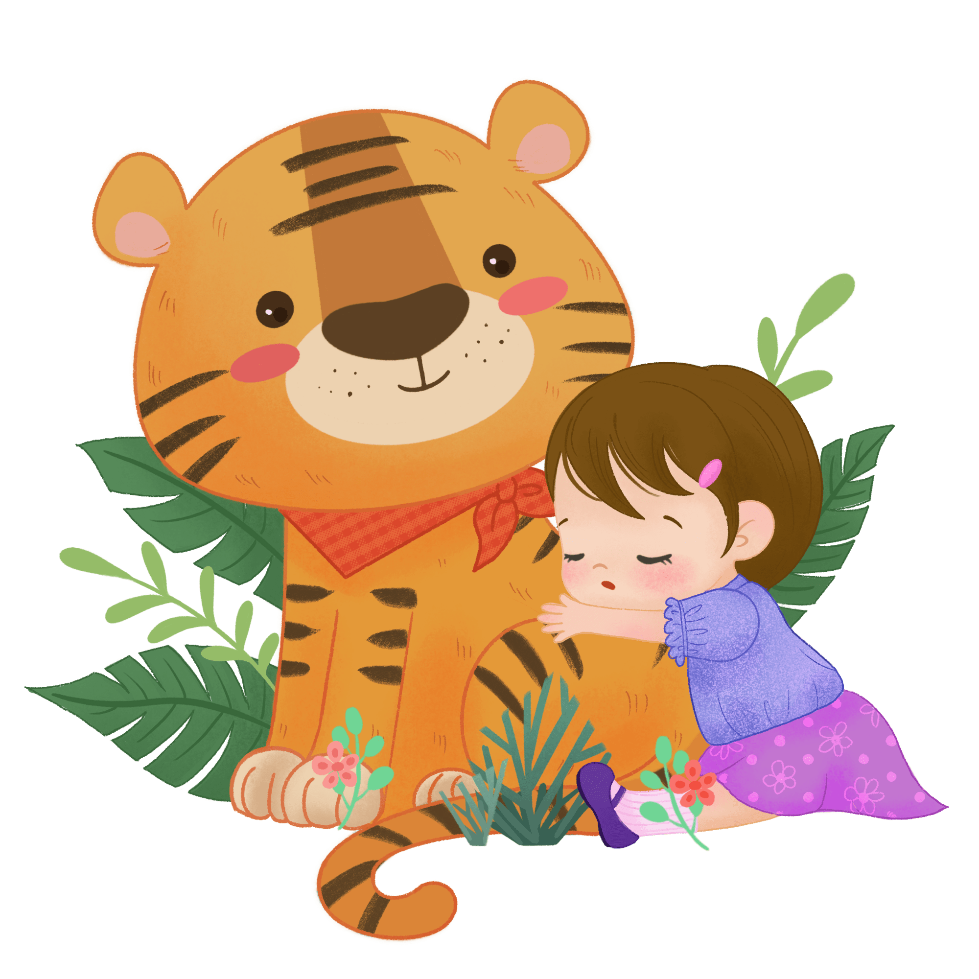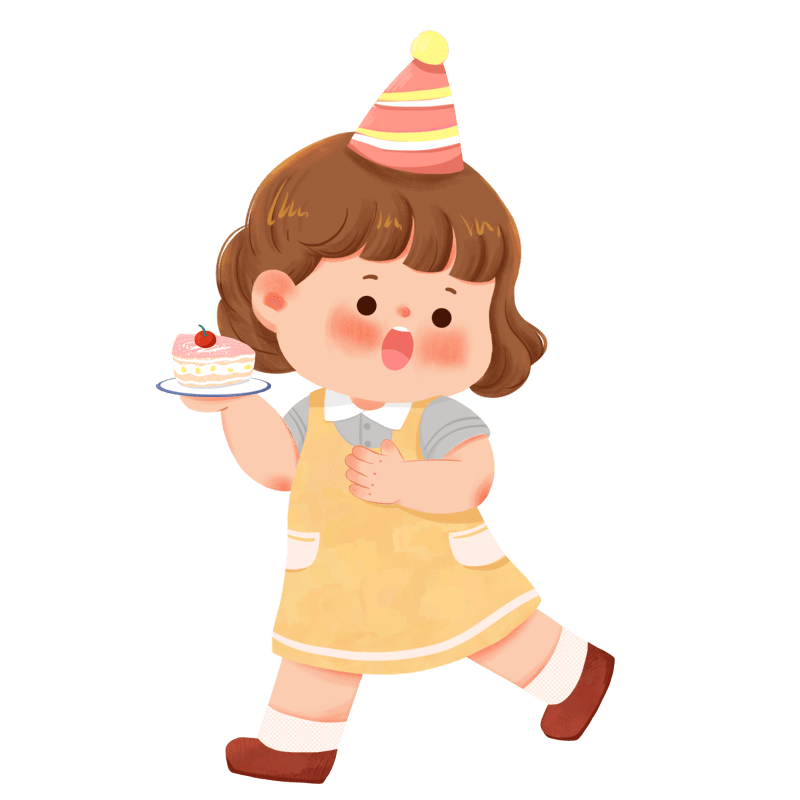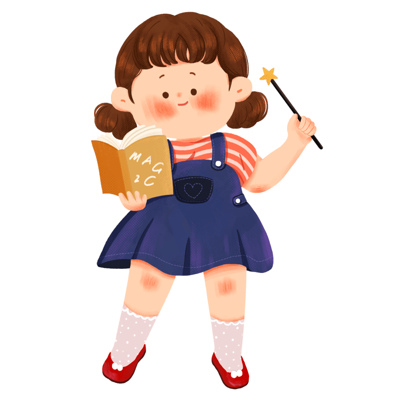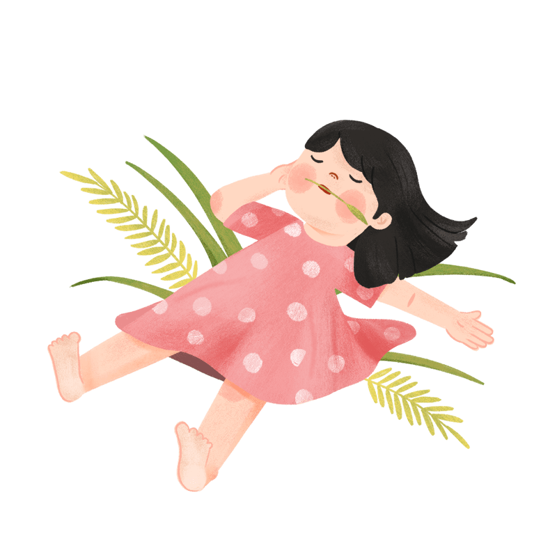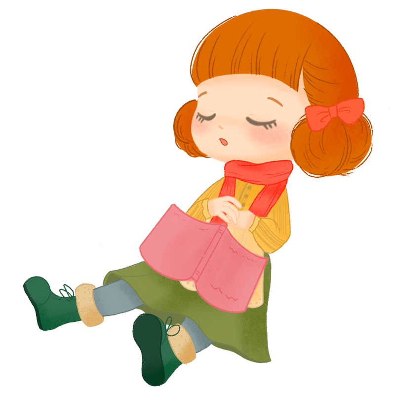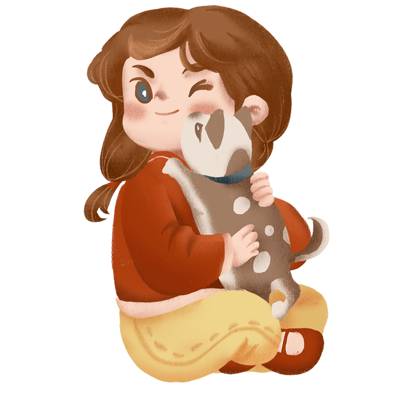 手绘-爷孙互动人物素材贴纸-双马尾女孩