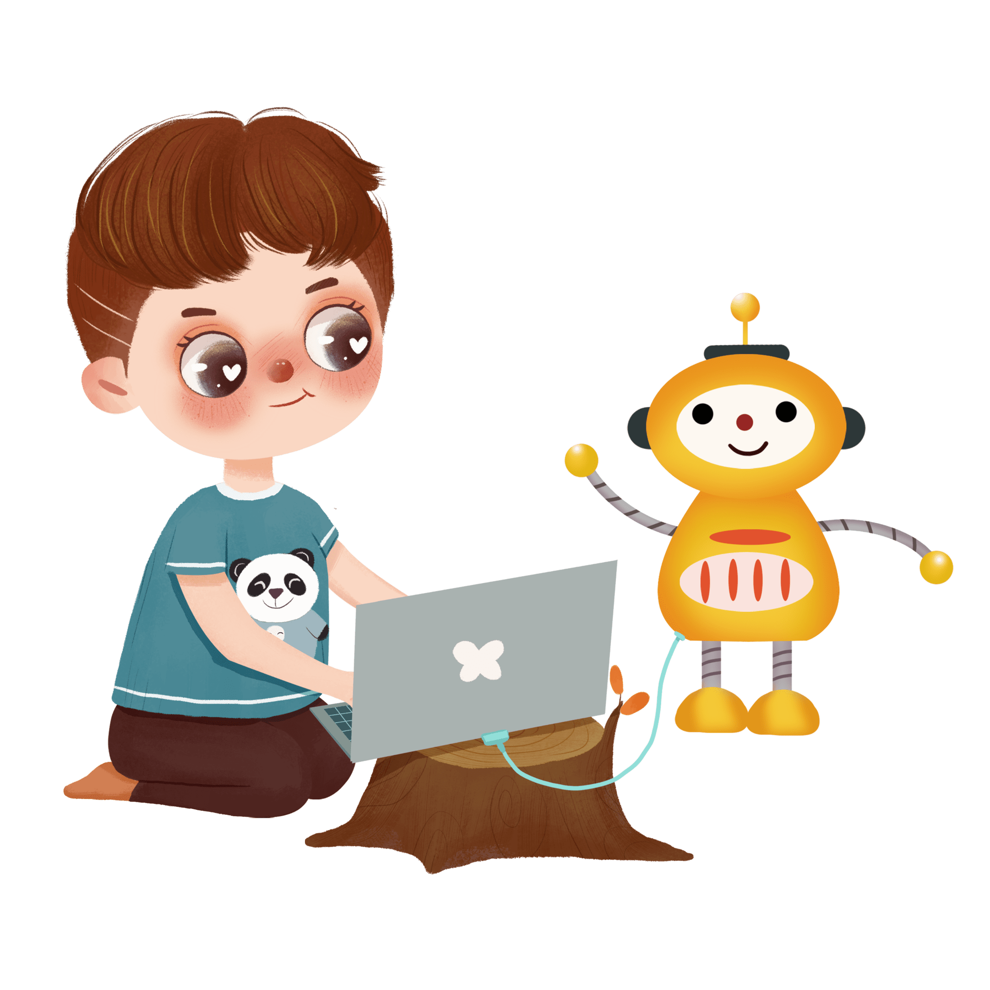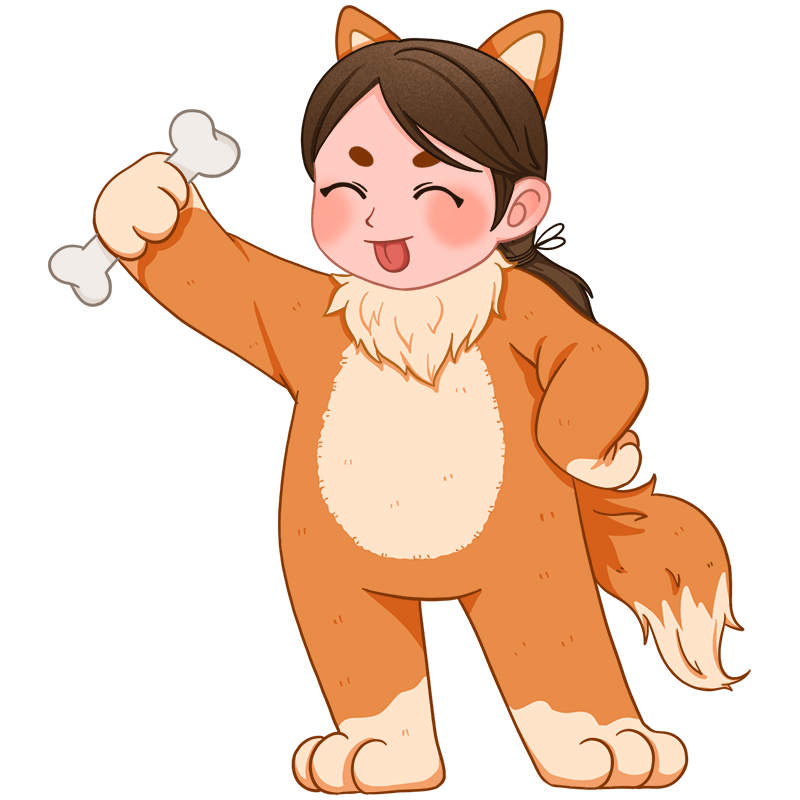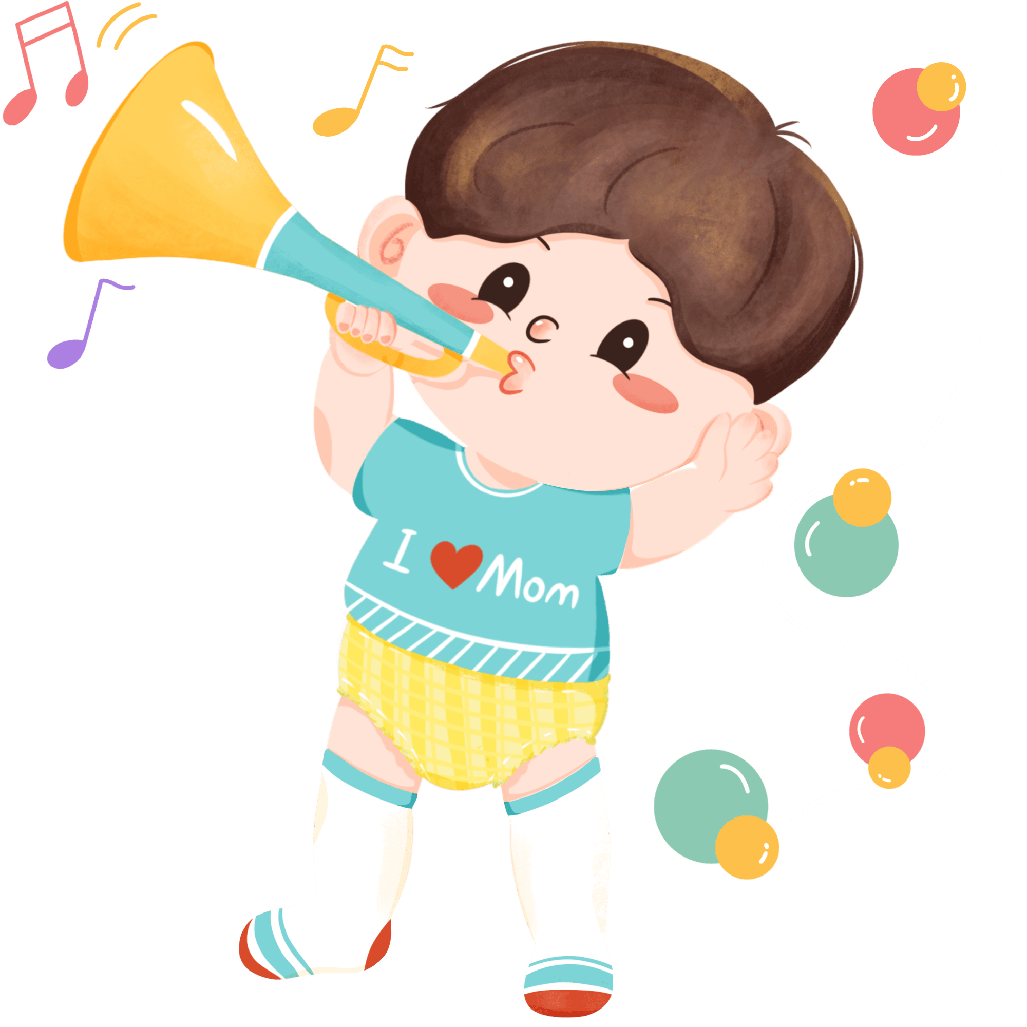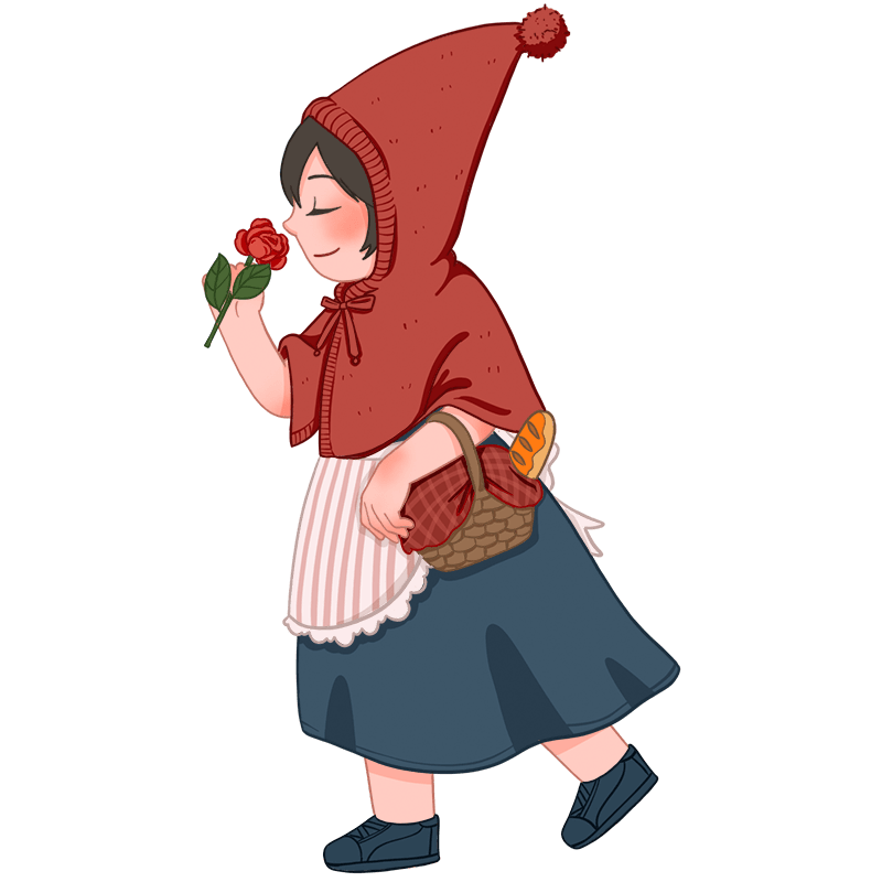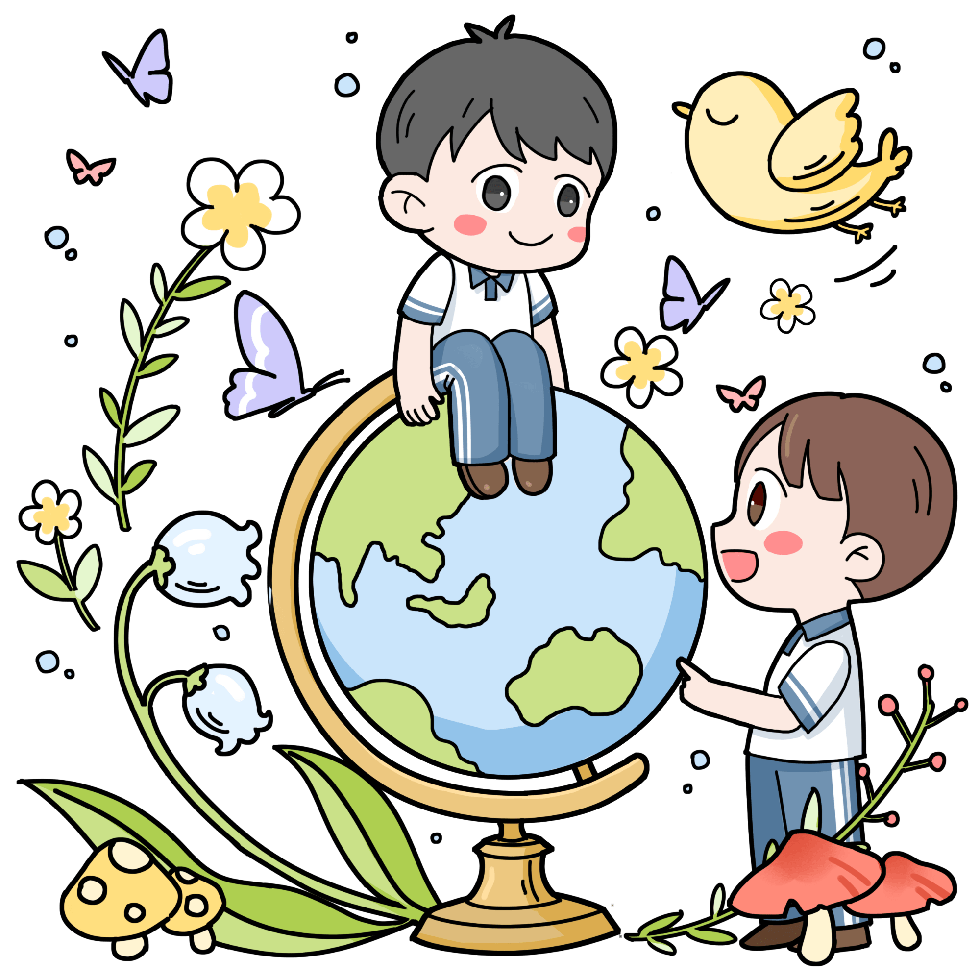 手绘-爷孙互动人物素材贴纸-双马尾女孩