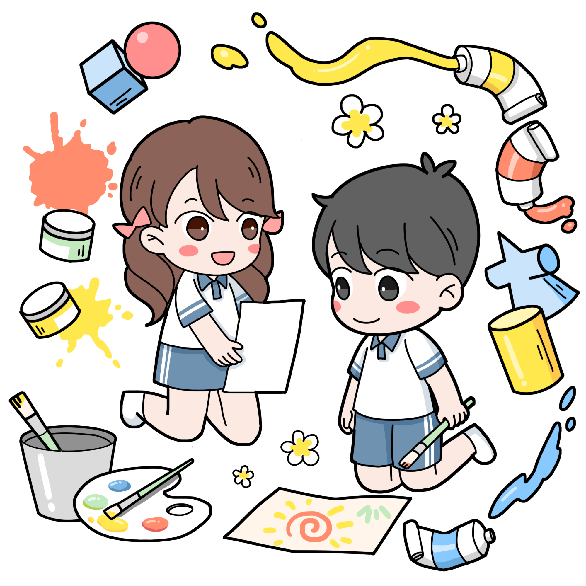 手绘肌理-姐妹人物元素贴纸-双马尾妹妹
