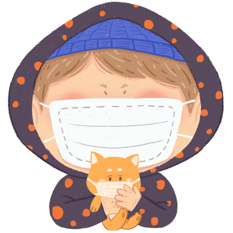 手绘-口罩头像蜡笔人物插画8