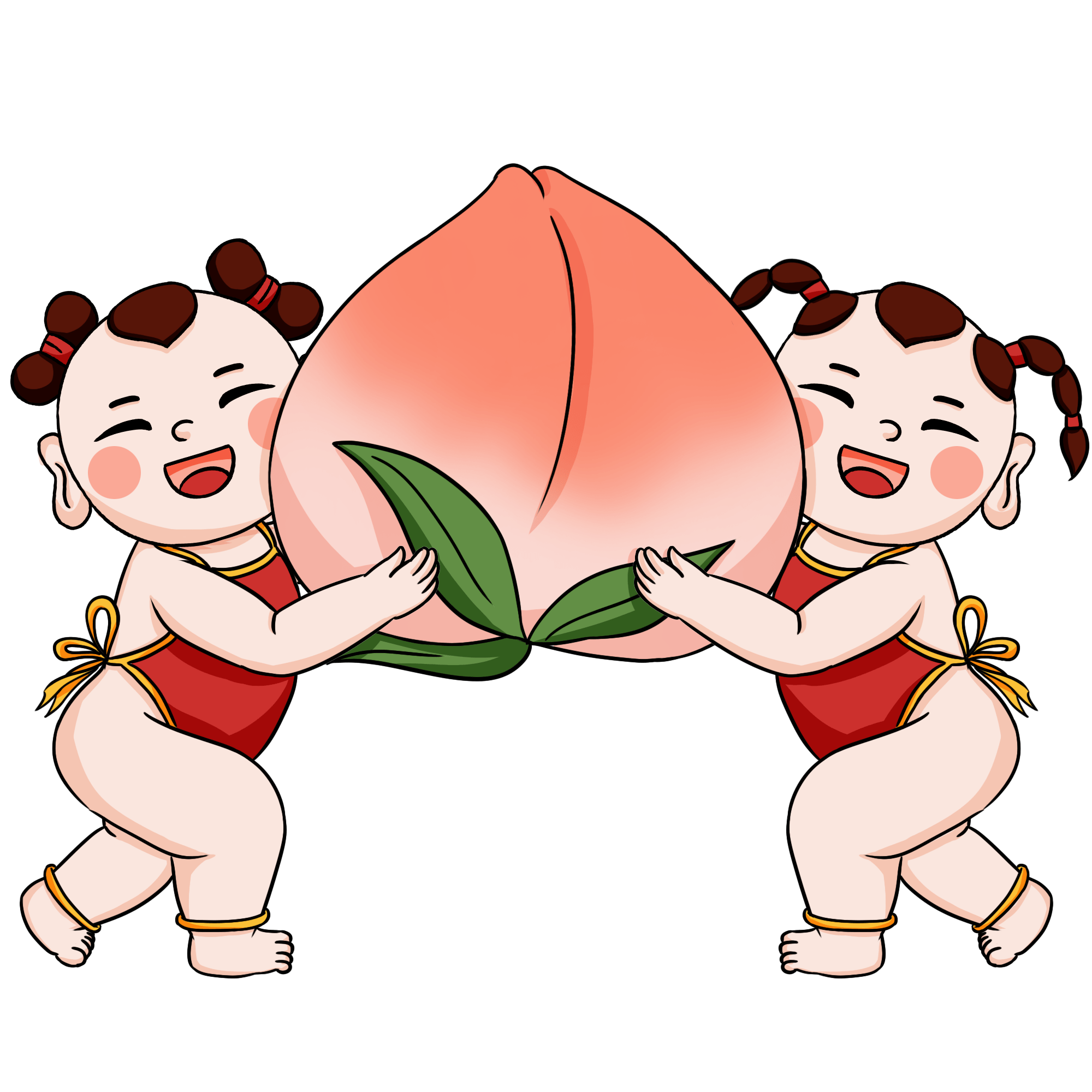中国风-寿桃组合人物插画-童子1
