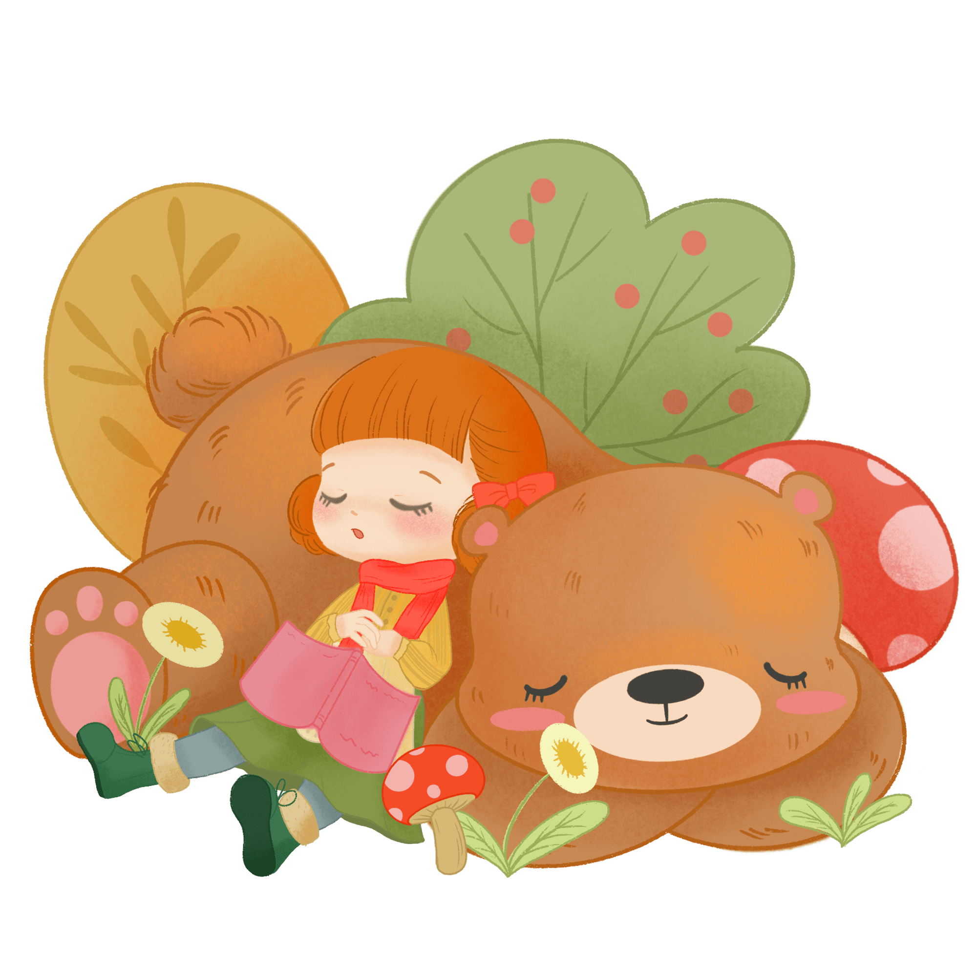 手绘-睡觉女孩人物场景插画贴纸5