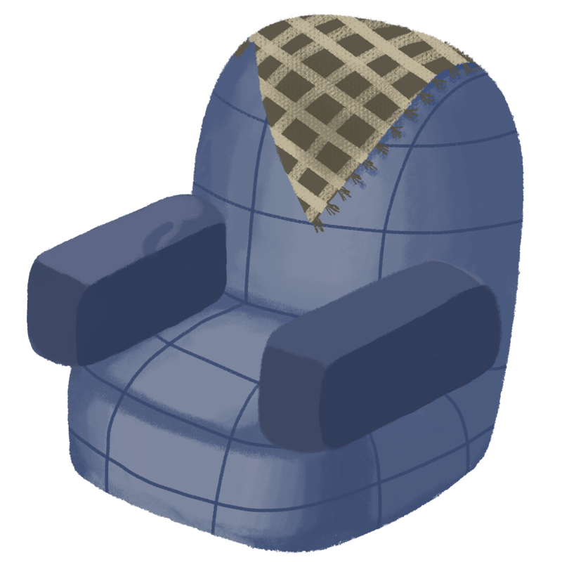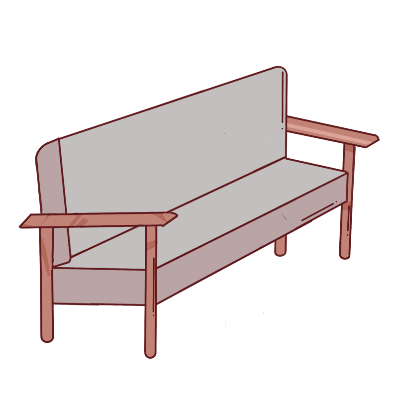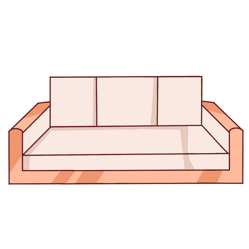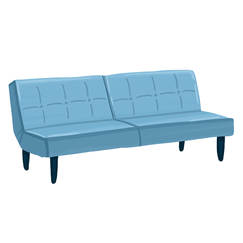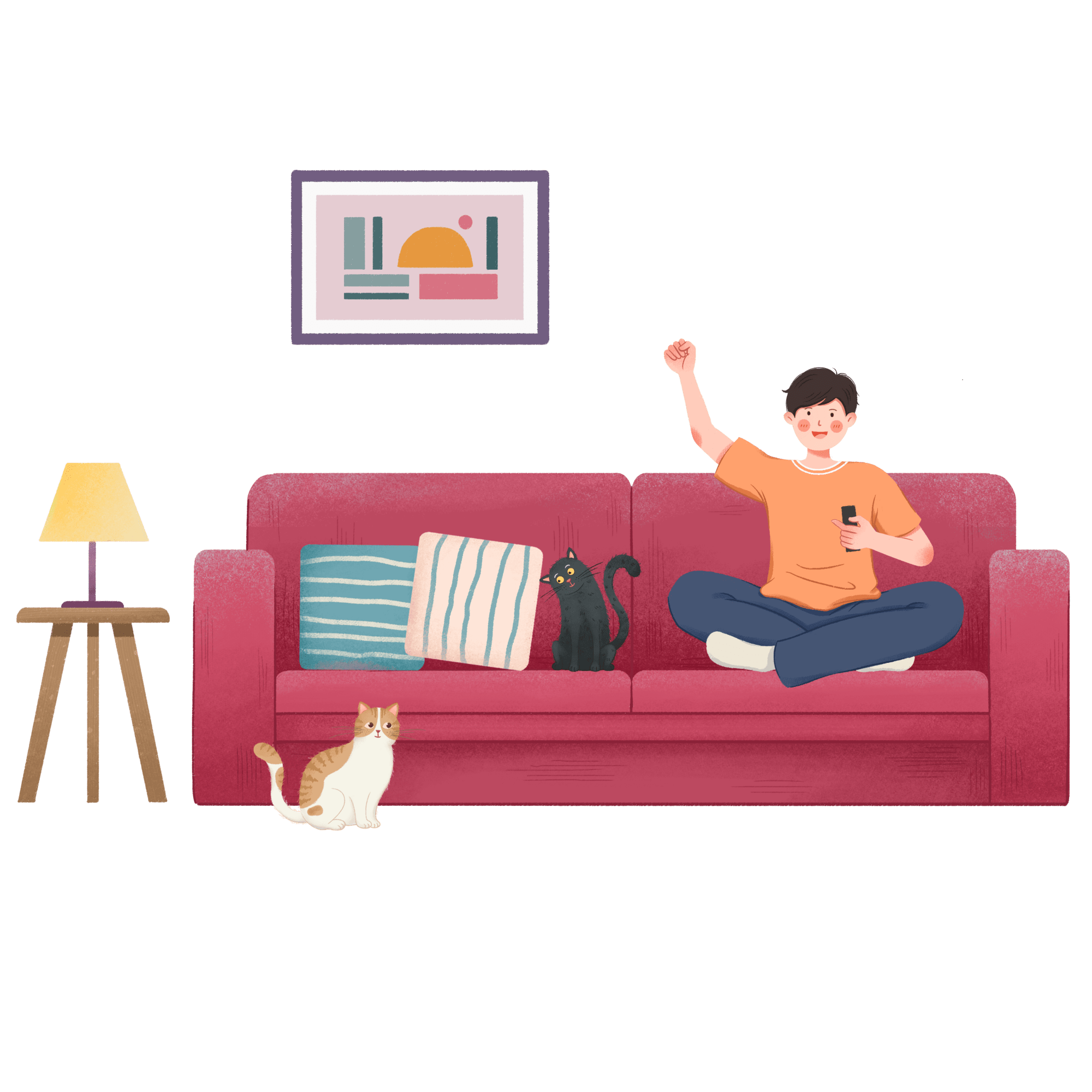 手绘-看球赛人物元素贴纸-蓝色沙发