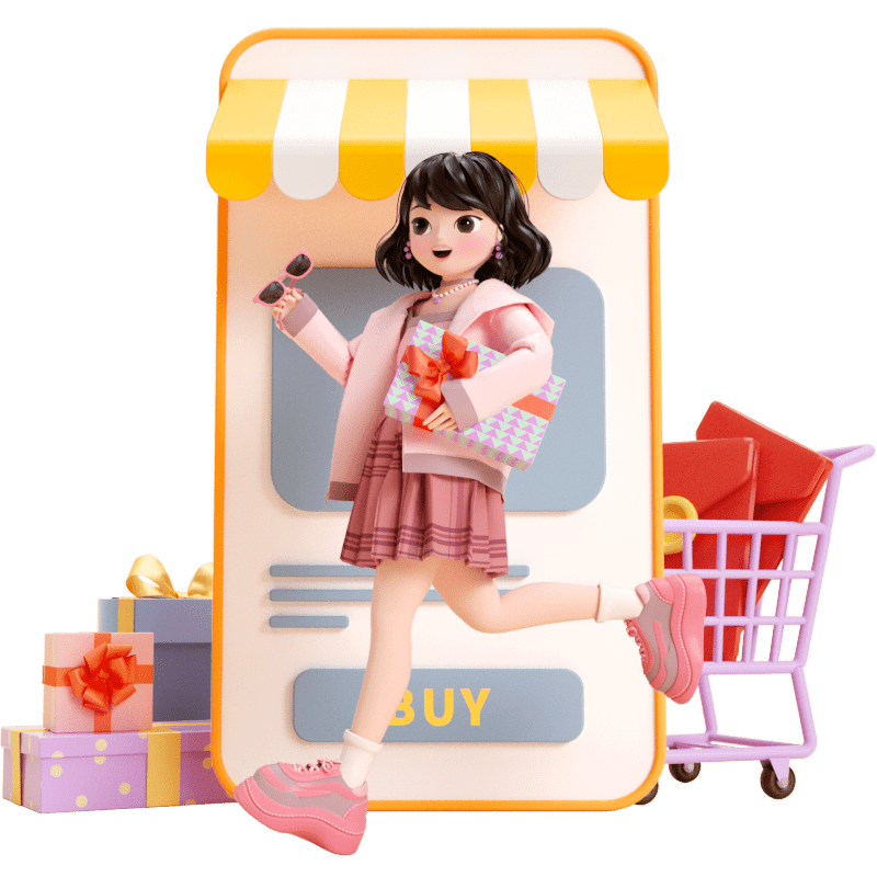 电商促销活动3D立体C4D购物人物组合元素
