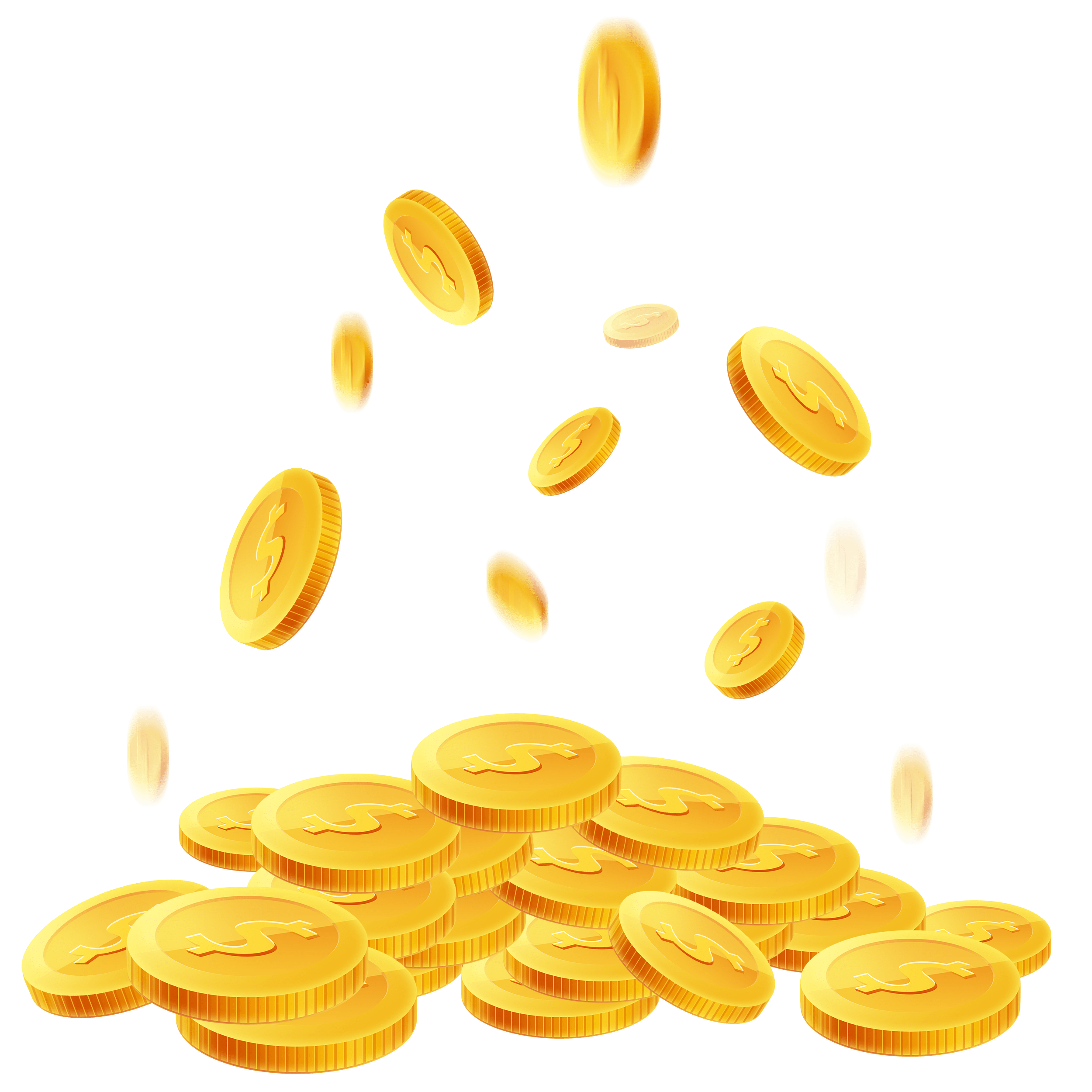 扁平掉落堆叠在一起的卡通金币