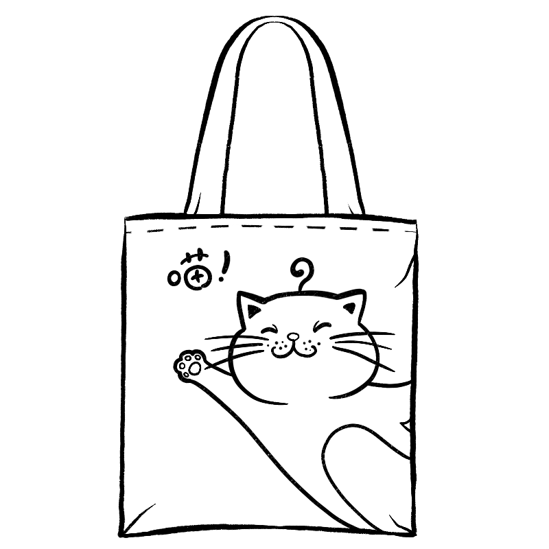 手绘-素描帆布包服饰贴纸-猫咪