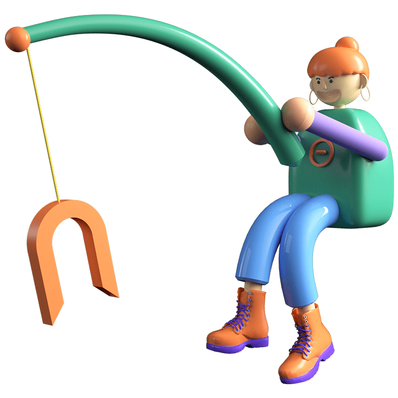 C4D-商务科技风贴纸-钓鱼小女孩