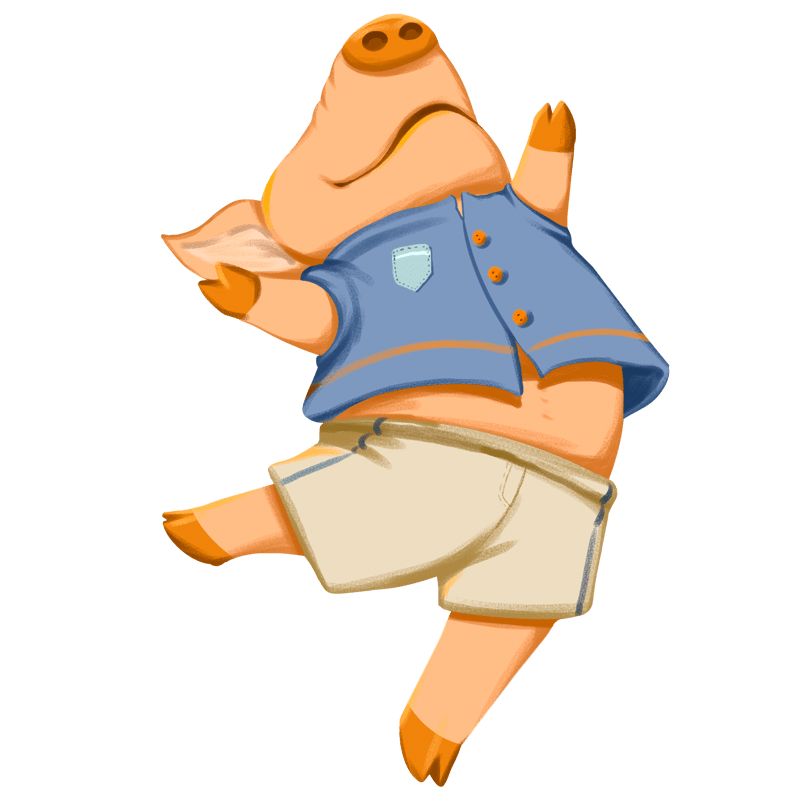 手绘-卡通音乐节动物元素-猪