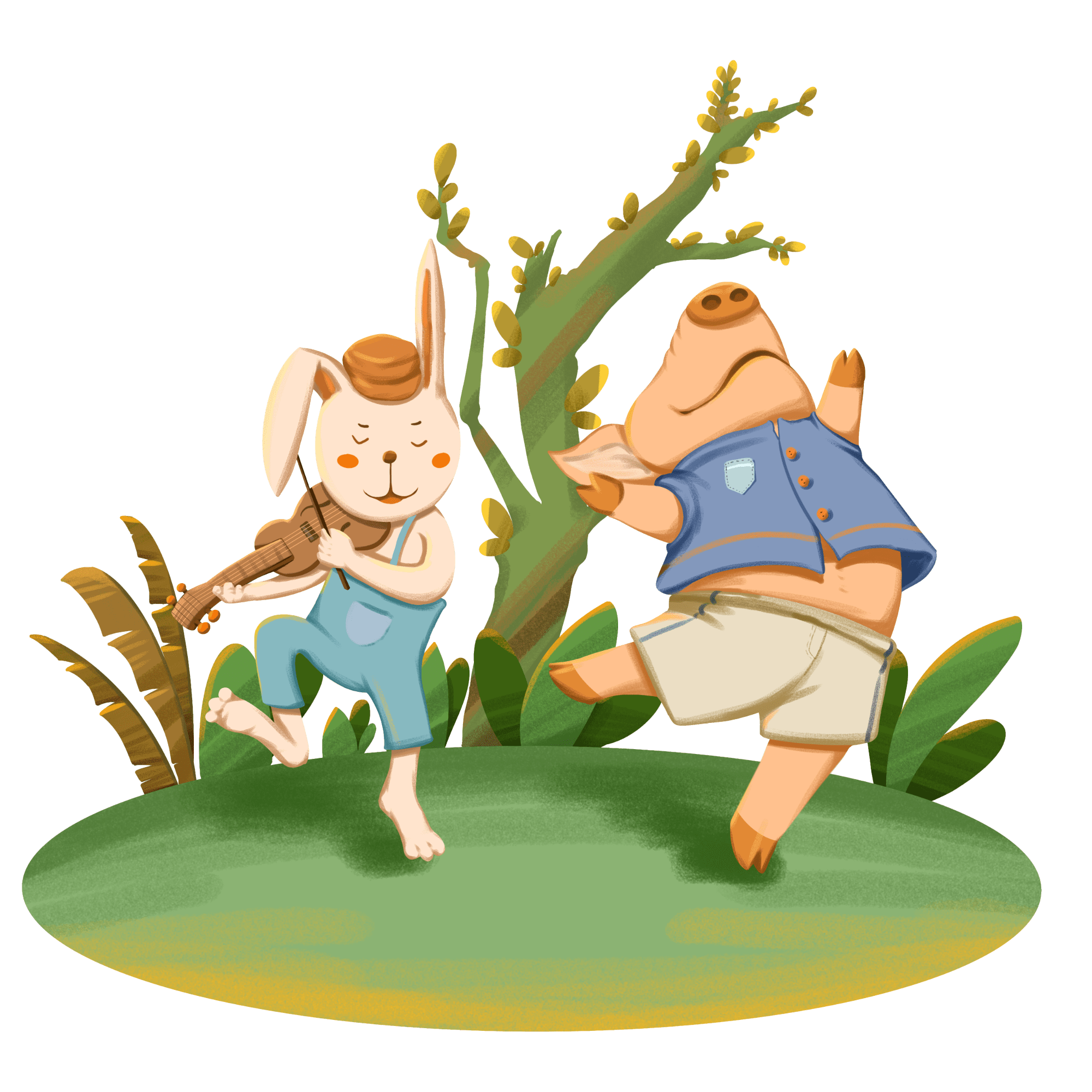 手绘-卡通音乐节动物元素-兔子
