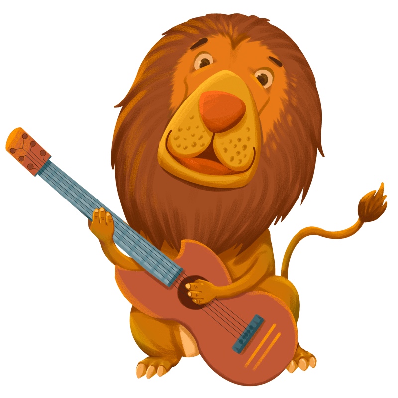 手绘-卡通音乐节动物元素-狮子