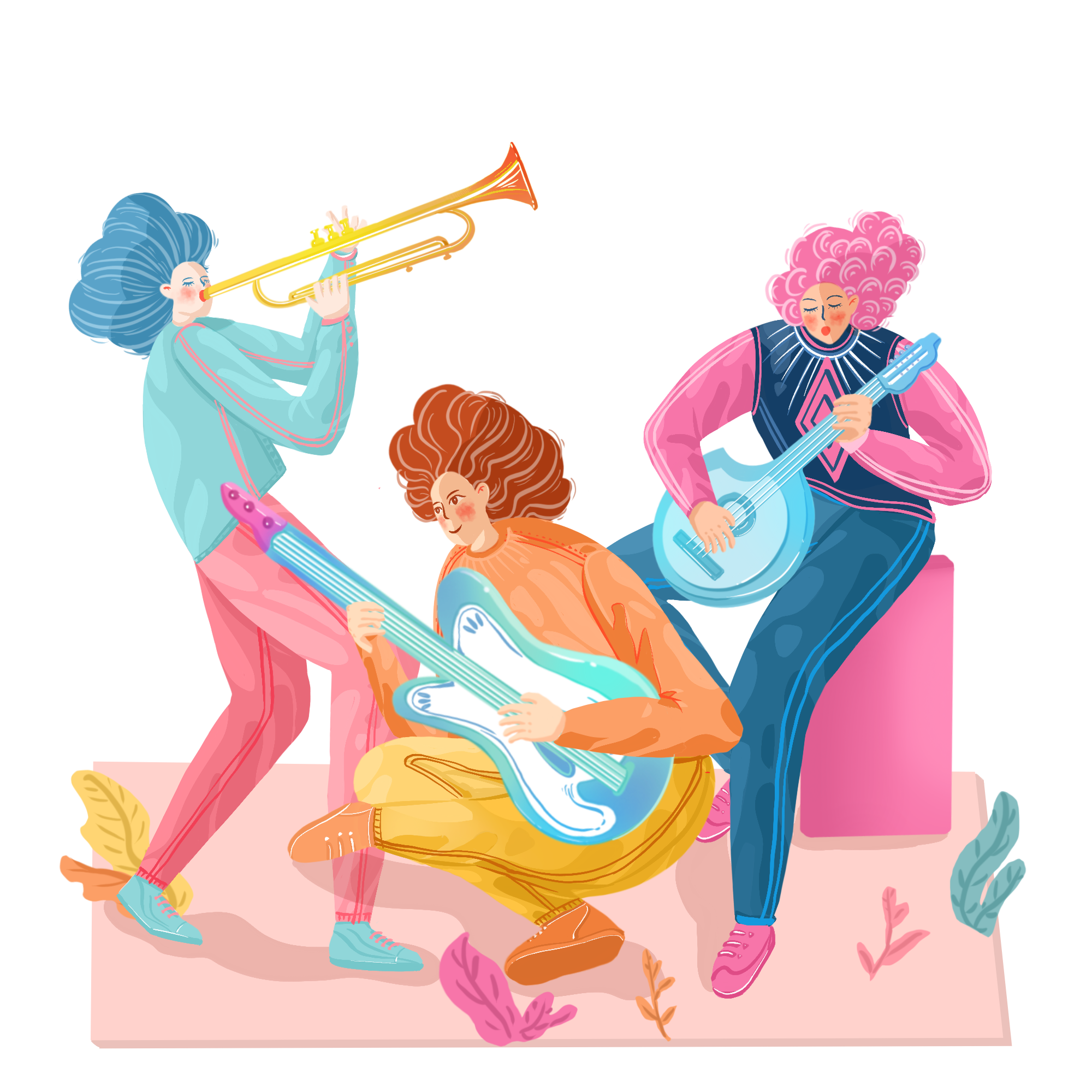 手绘-音乐节人物插画场景1