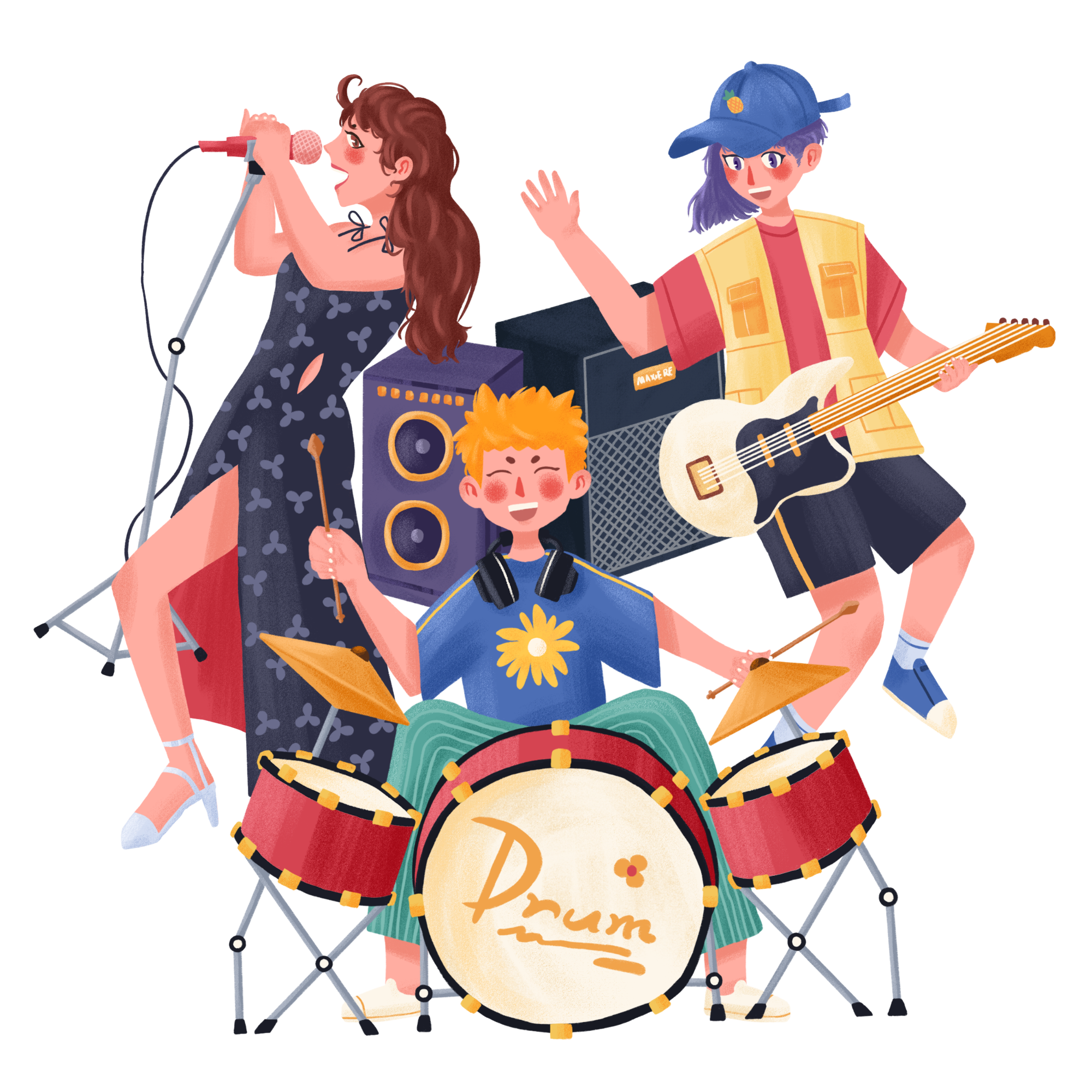 手绘-音乐节演唱会乐队人物场景3