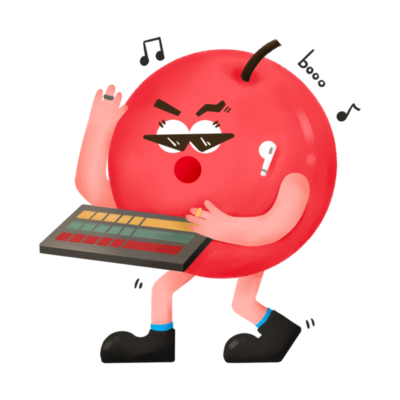 手绘-拟人音乐水果贴纸-苹果