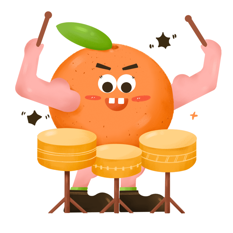 手绘-拟人音乐水果贴纸-橘子