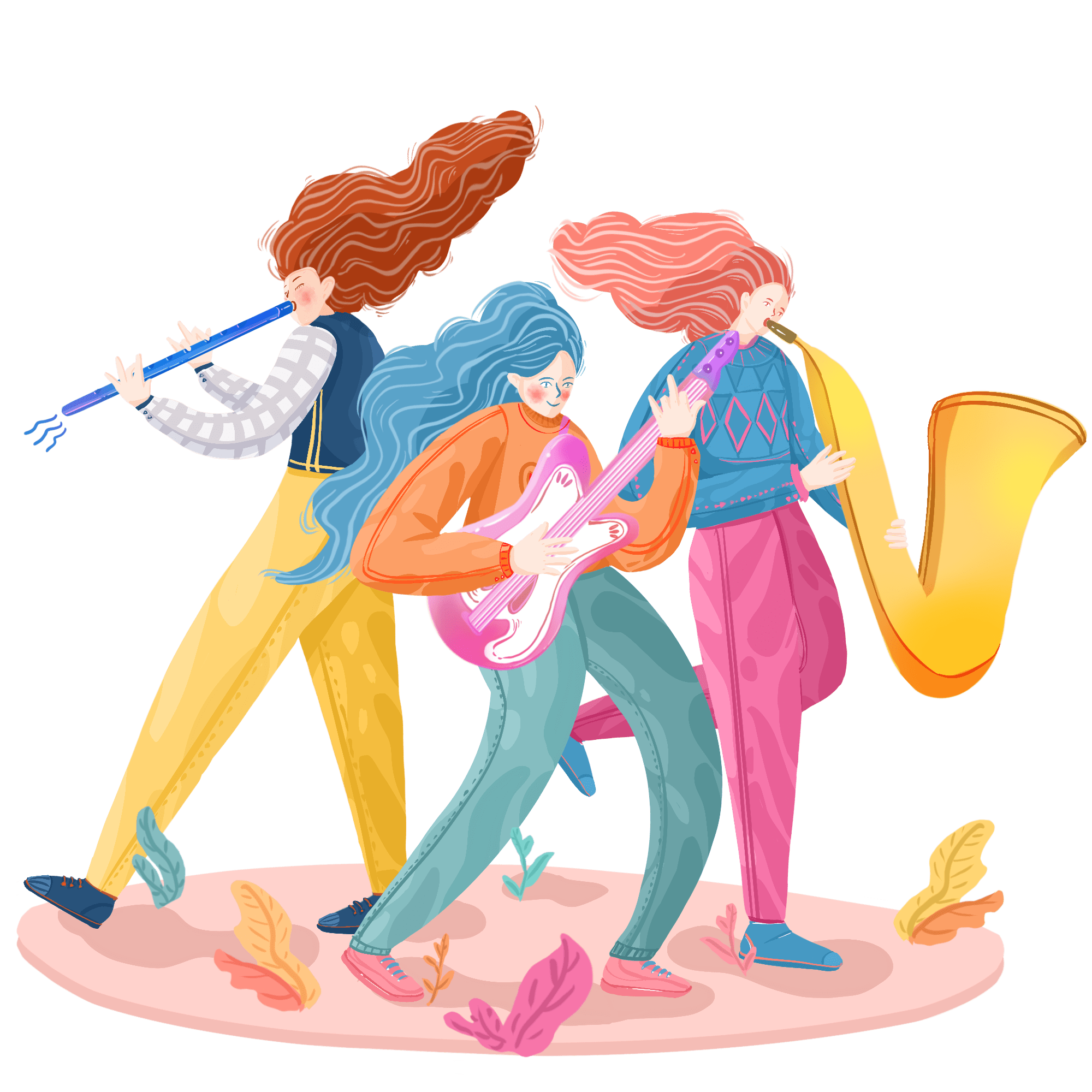 手绘-音乐节演唱会乐队人物场景2