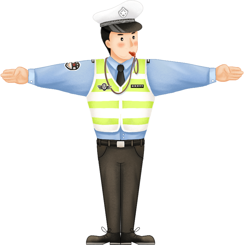 手绘-交警元素贴纸-停车