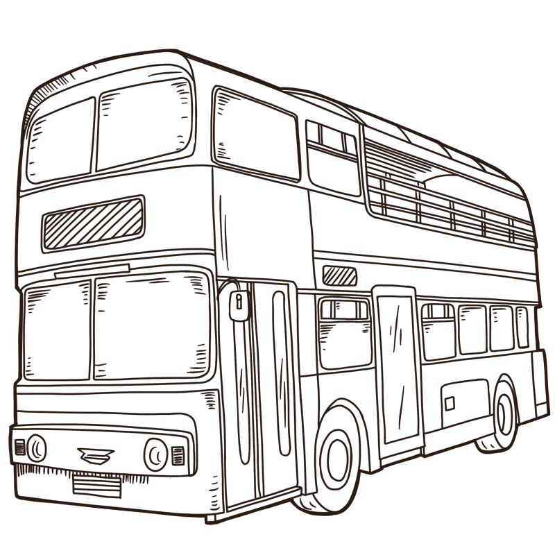 手绘-西方复古交通工具贴纸-双层车
