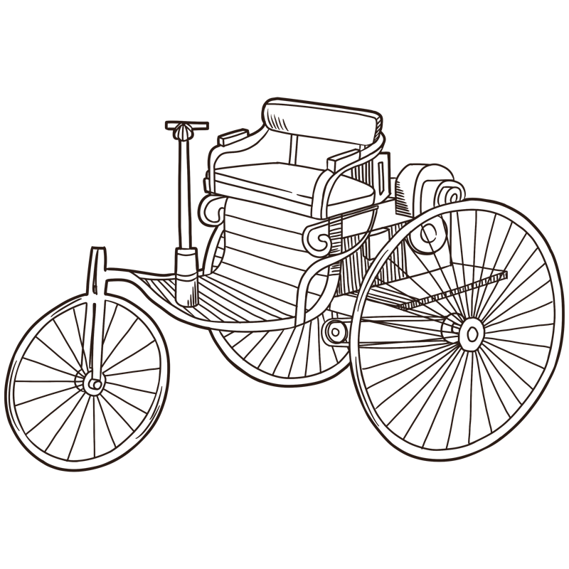 手绘-西方复古交通工具贴纸-三轮车
