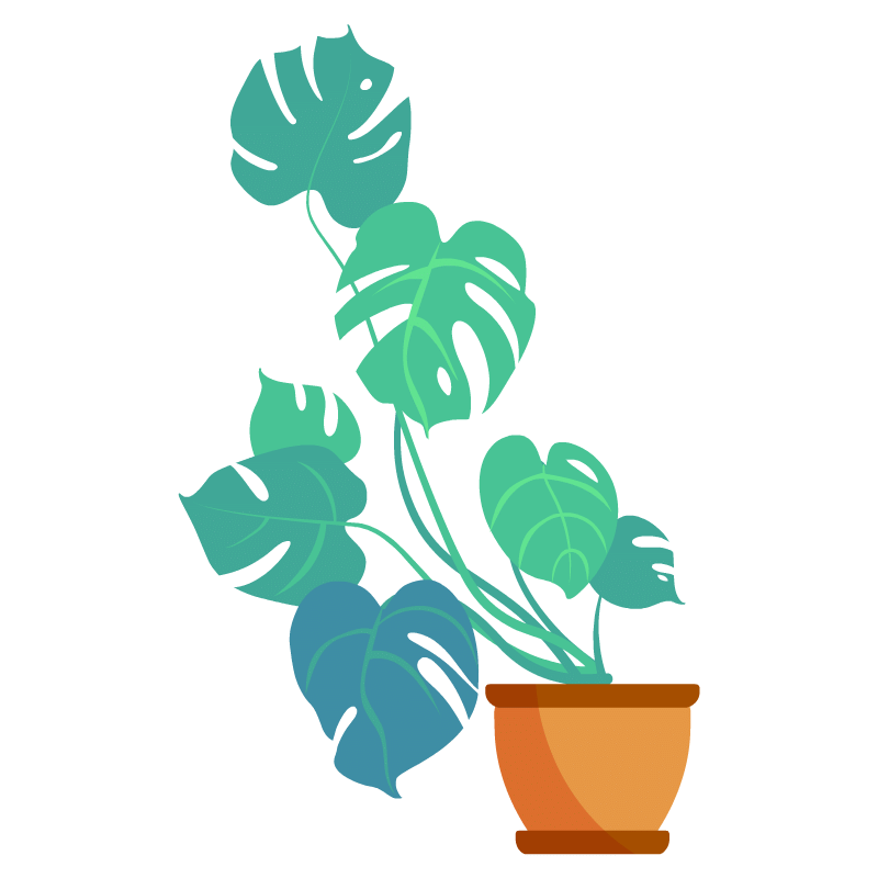 清新风植物盆栽主题插画-龟背竹