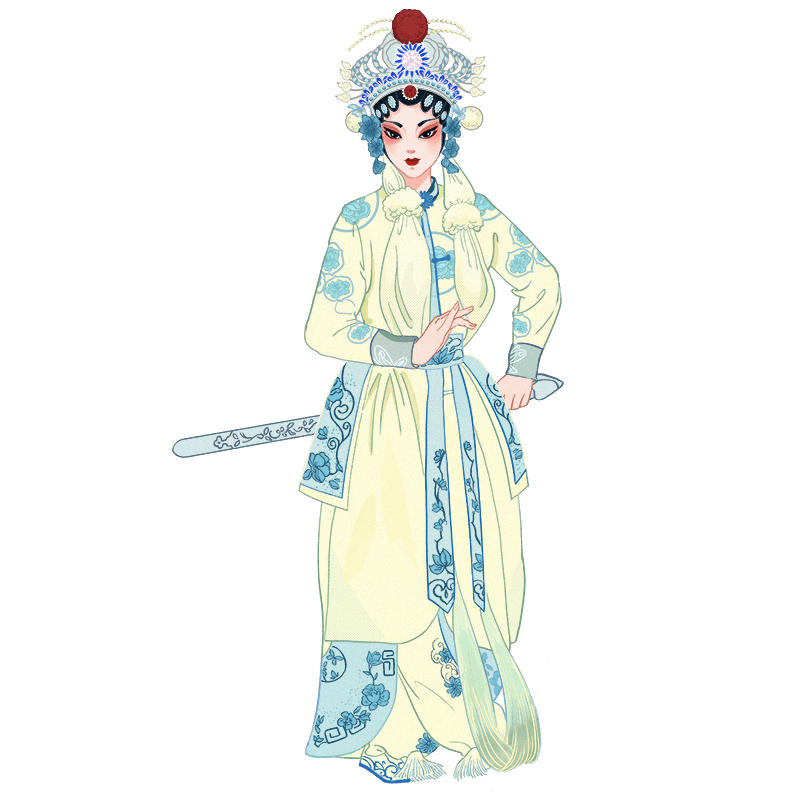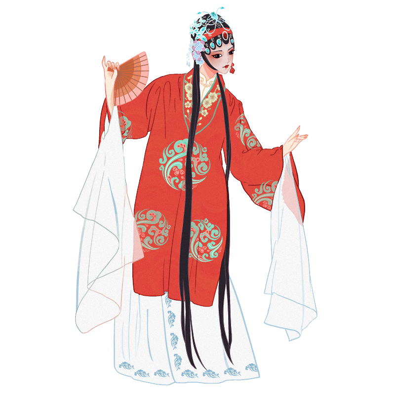 手绘-京剧人物插画贴纸-旦角5