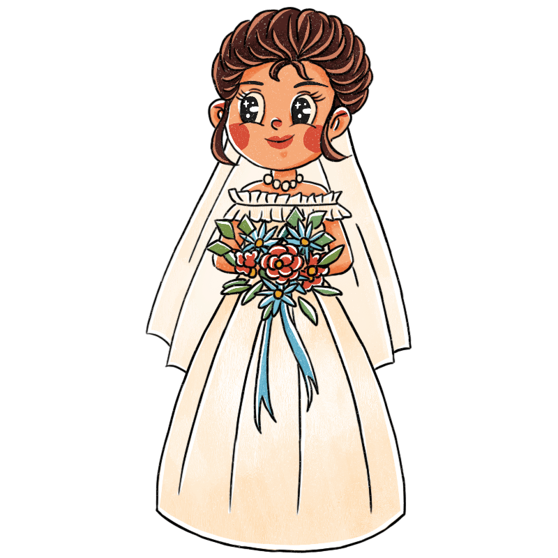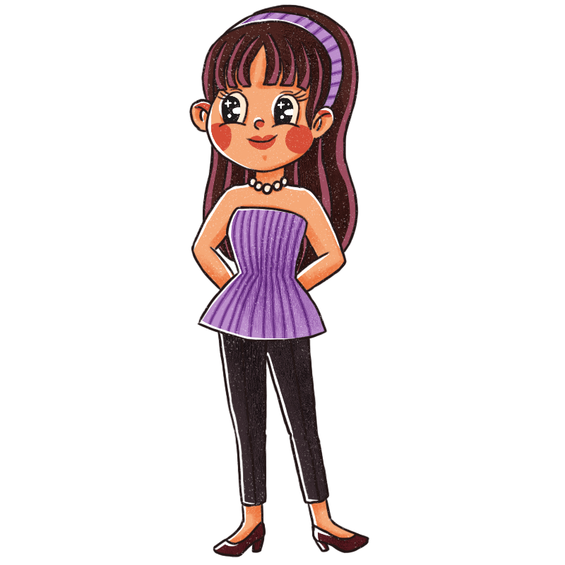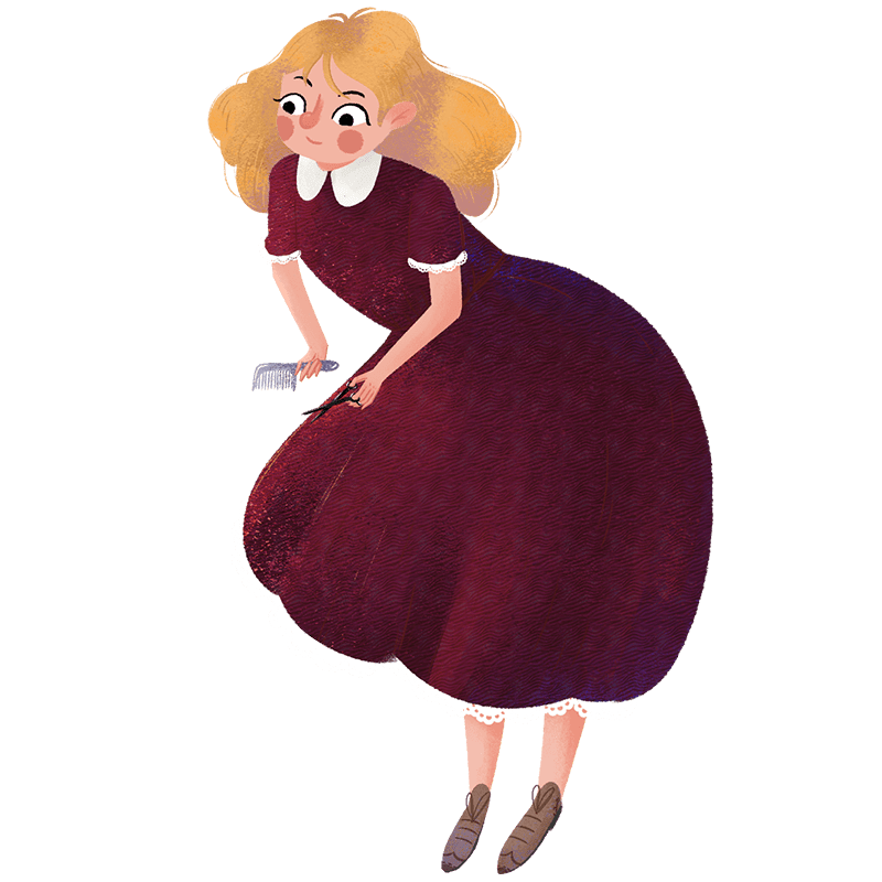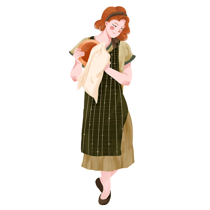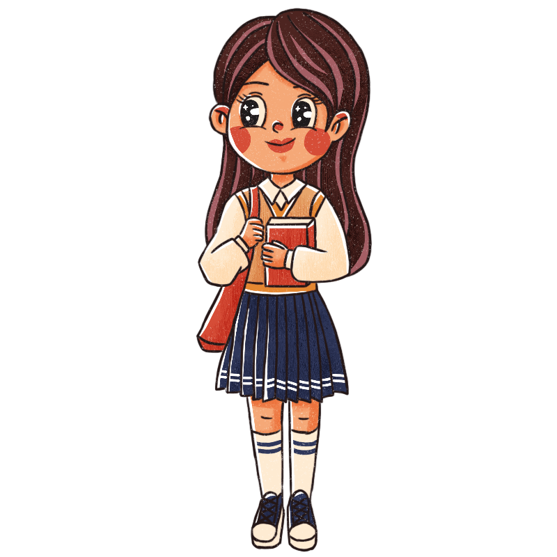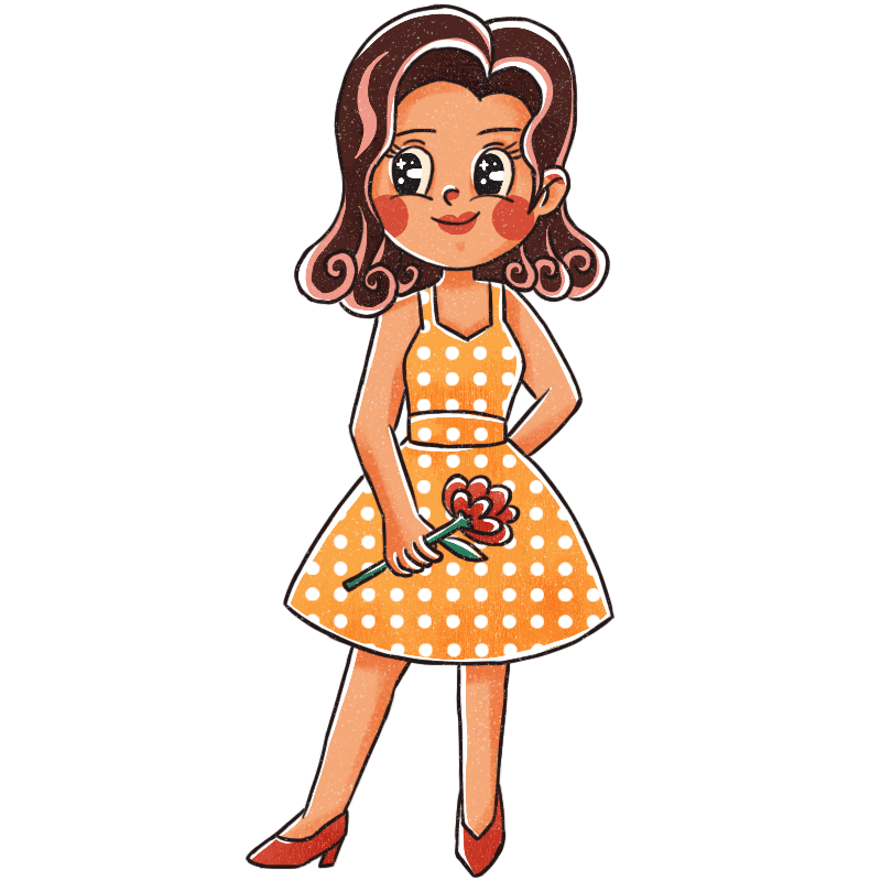 手绘-复古卡通人物主题-女孩