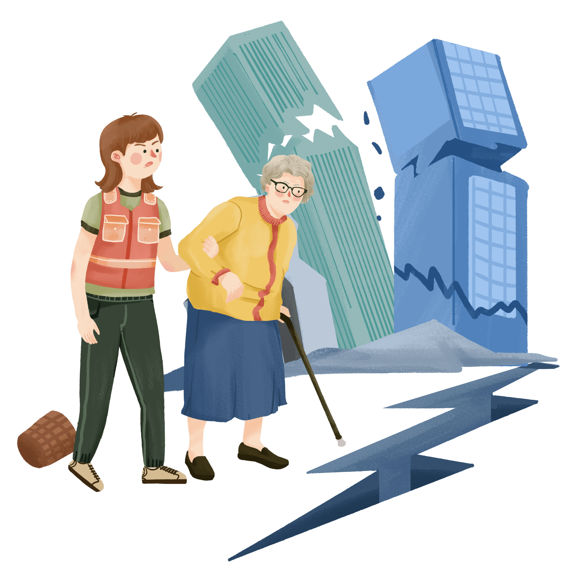 手绘-灾害救援元素-地震