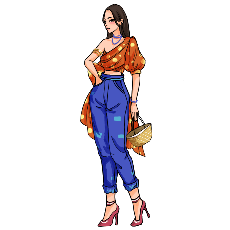 手绘时尚穿搭女性人物插画1