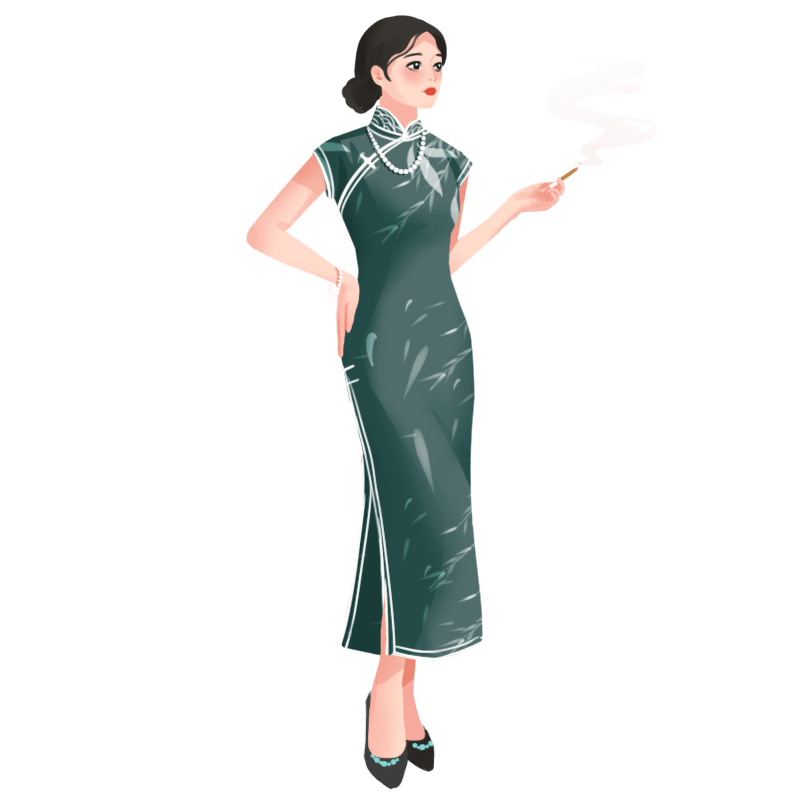 手绘-旗袍女人民国人物插画贴纸8